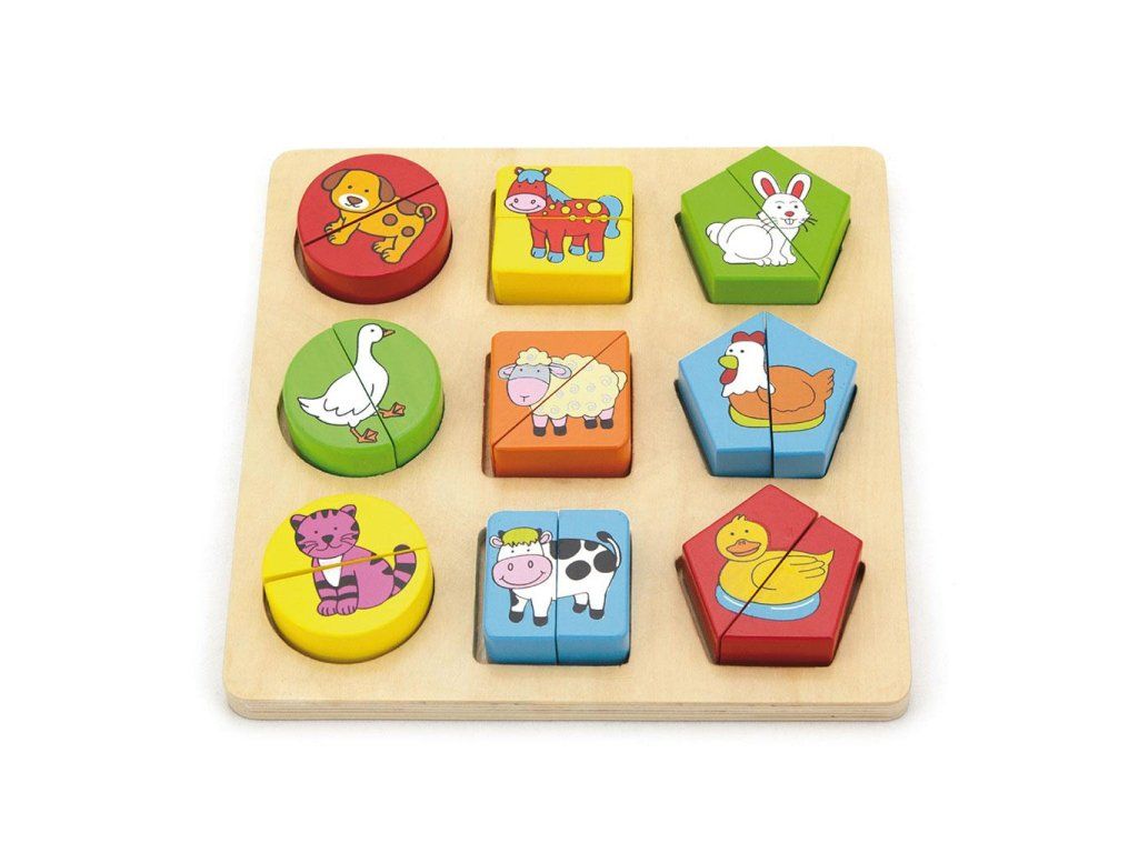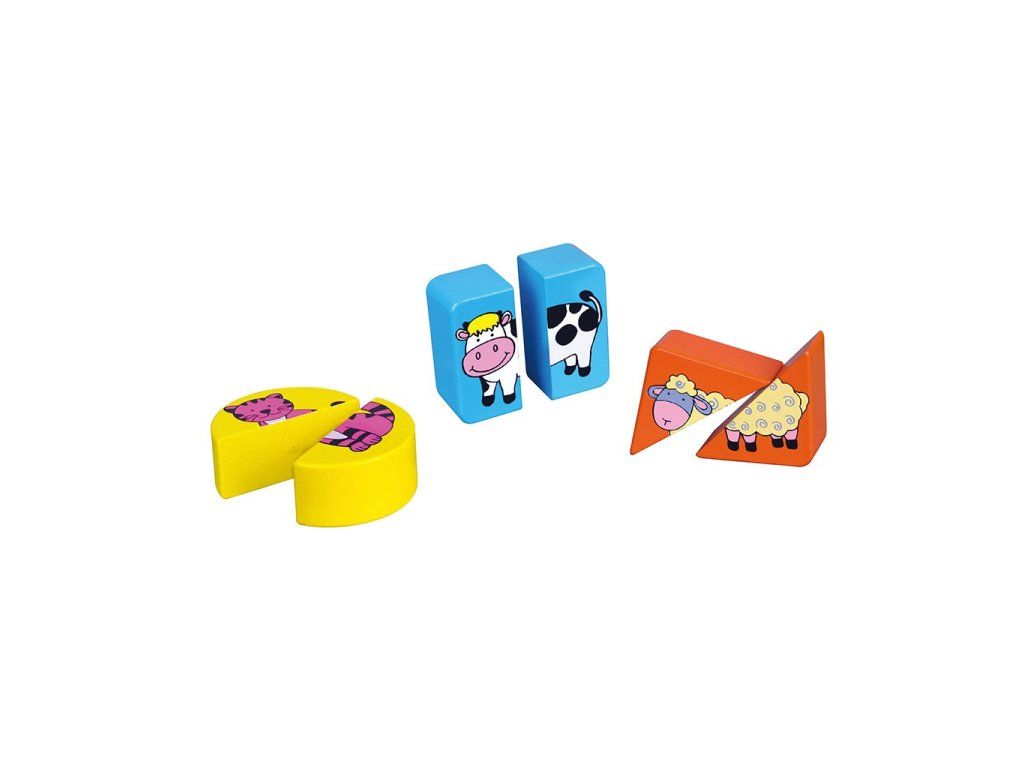 Drevené puzzle budú preto na začiatok ideálne. Dieťa sa pri ich skladaní nenechá odradiť. Sada puzzle obsahuje 9 súprav.Každá súprava sa skladá z 2 dielikov. Dodatočné puzzle pomôžu pri učení tvarov, farieb.