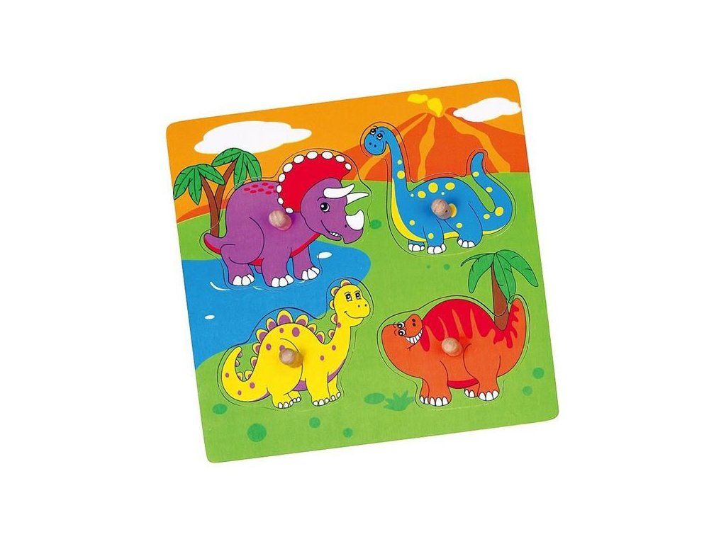 Drevené puzzle s úchytmi Viga Dino. Puzzle na drevenom podklade sú tvorené dieliky s obrázkami zvierat. Deťom sa vďaka úchytom puzzle lepšie držia v prstoch a ľahšie sa vkladajú do určených miest. Tiež pomáhajú zlepšiť manuálnu zručnosť i obratnosť a zároveň učia dieťa rozpoznať tvary a farby. Prispievajú k rozvoju motoriky, zlepšujú koordináciu a pozorovacie schopnosti dieťaťa. Balenie obsahuje 4 dieliky. Určené pre deti od 12 mesiacov. Našou prioritou je bezpečnosť a kvalita našich výrobkov, a preto farby použité na hračkách nie sú toxické a spĺňajú bezpečnostné štandardy (EN71 a ASTM). Rozmer cca: 22x22x1cm.Dodatočné parametre