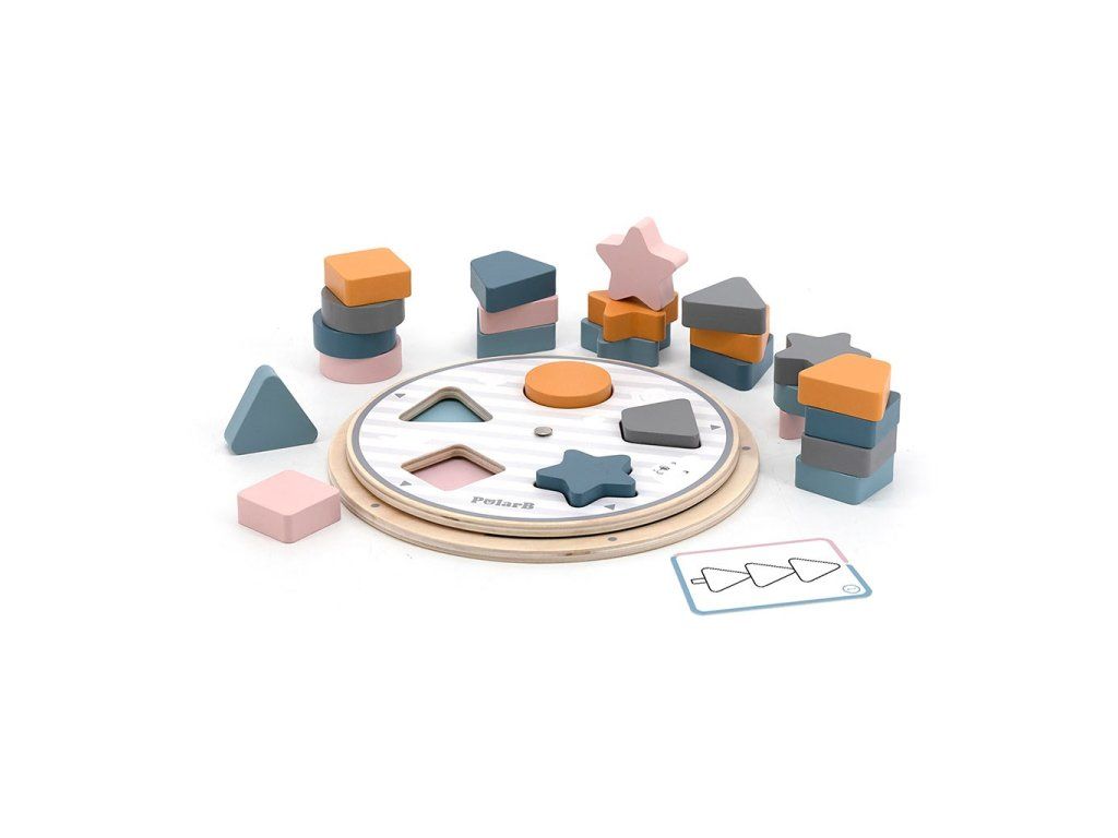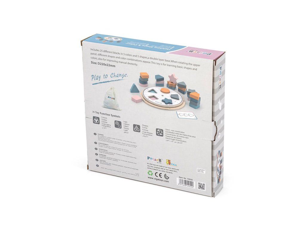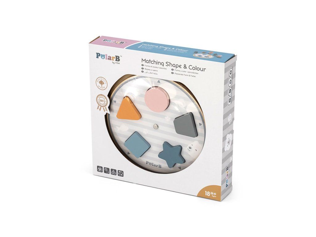 Predstavujeme drevenú hračku od spoločnosti VIGA - vkladacie puzzle s tvarmi a farbami zo série POLAR BEAR. Hračka sa skladá z pohyblivého disku, 25 kociek v rôznych kombináciách farieb a tvarov a obojstranných kariet s obrázkami. Kocky možno umiestniť na disk priradením správnych tvarov a farieb alebo na karty usporiadaním obrázkov, ktoré sú na nich zobrazené.