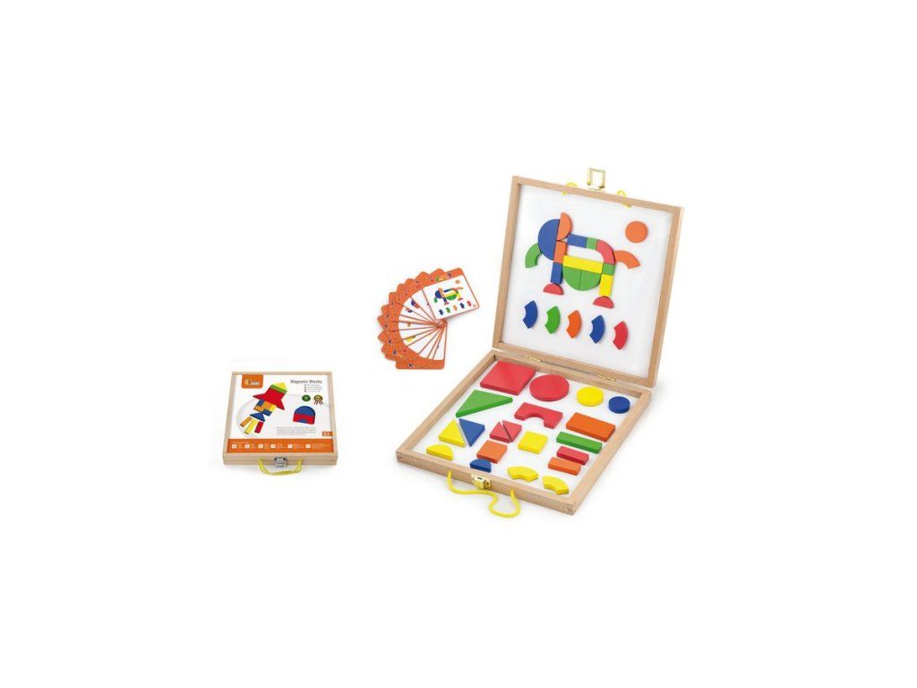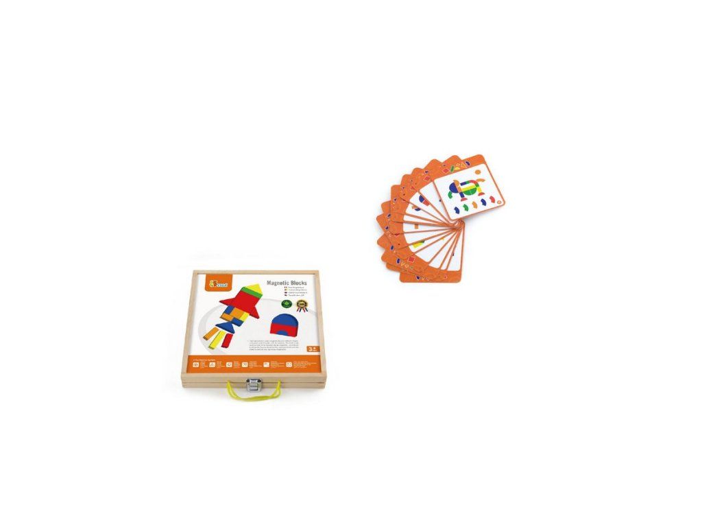 Kufor s magnetickými kockami Viga. Drevený kufor obsahuje 42 kociek a 12 kariet s 24 kombináciami, do ktorých je možné umiestniť kocky. Dieťa môže tvoriť na základe šablóny, alebo vytvoriť vlastné kombinácie. Všetky sú vyrobené z vysoko kvalitných materiálov. Magnetické a farebné kocky sú v rôznych tvaroch, čo umožní dieťaťu vytvoriť nové postavy. Hračka je vyrobená z lakovaného dreva. Našou prioritou je bezpečnosť a kvalita našich výrobkov, a preto farby použité na hračkách nie sú toxické a spĺňajú bezpečnostné štandardy (EN71 a ASTM). Pre deti od 36 mesiacov. Hračka je vhodná ako krásny darček, ktorú si vaše deti zamilujú.Dodatočné parametre