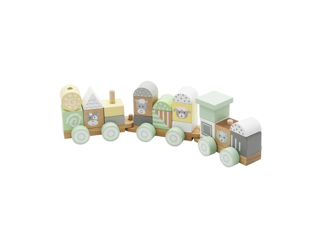 Jemné pastelové farby a prírodné drevo robia z tejto hračky nielen skvelého spoločníka na hranie, ale aj krásny doplnok do detskej izby. Vláčik je vyrobený z kvalitného masívneho dreva a natretý bezpečnými farbami šetrnými k životnému prostrediu.