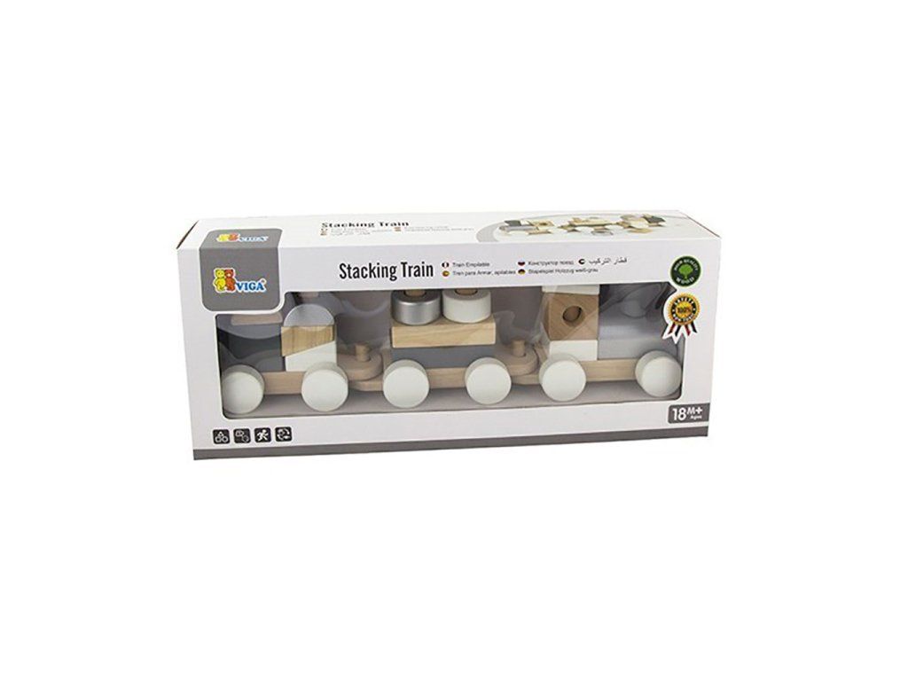 Sivo-biely vláčik s ťahacími vagónmi je určený pre aktívne batoľatá.Vláčik rozvíja koordináciu ruka-oko, podporuje logické myslenie a umožňuje kreatívnu hru.