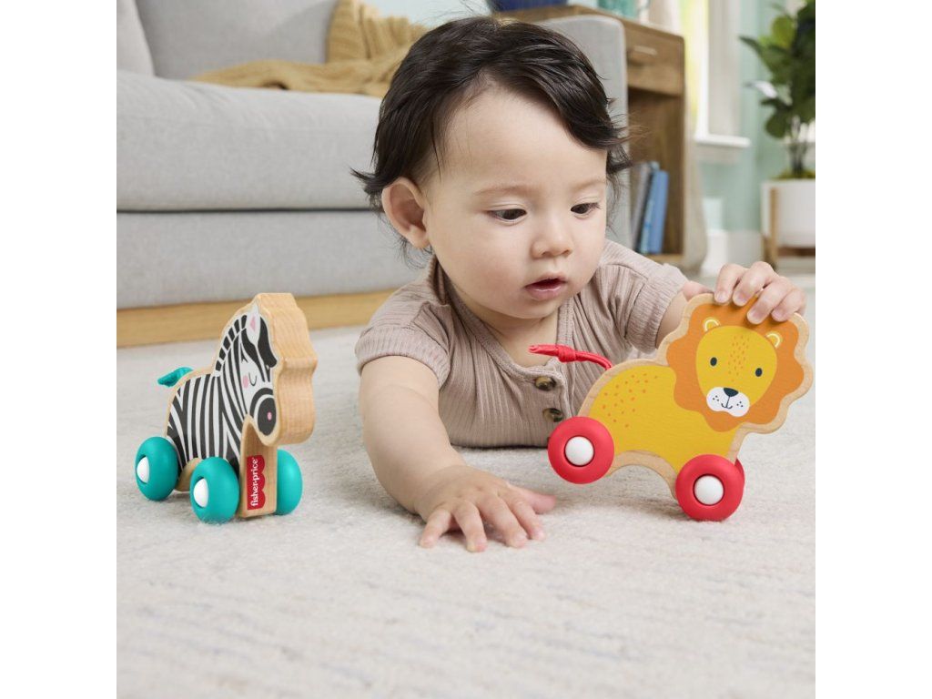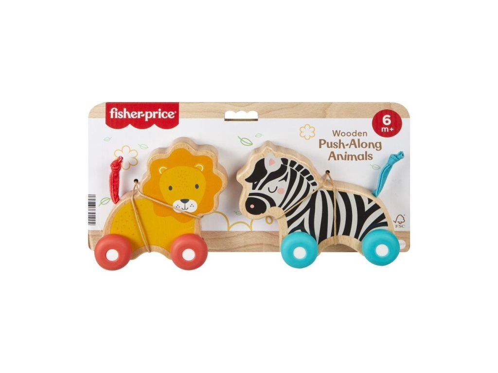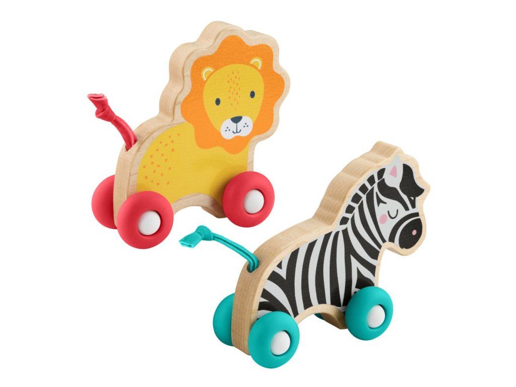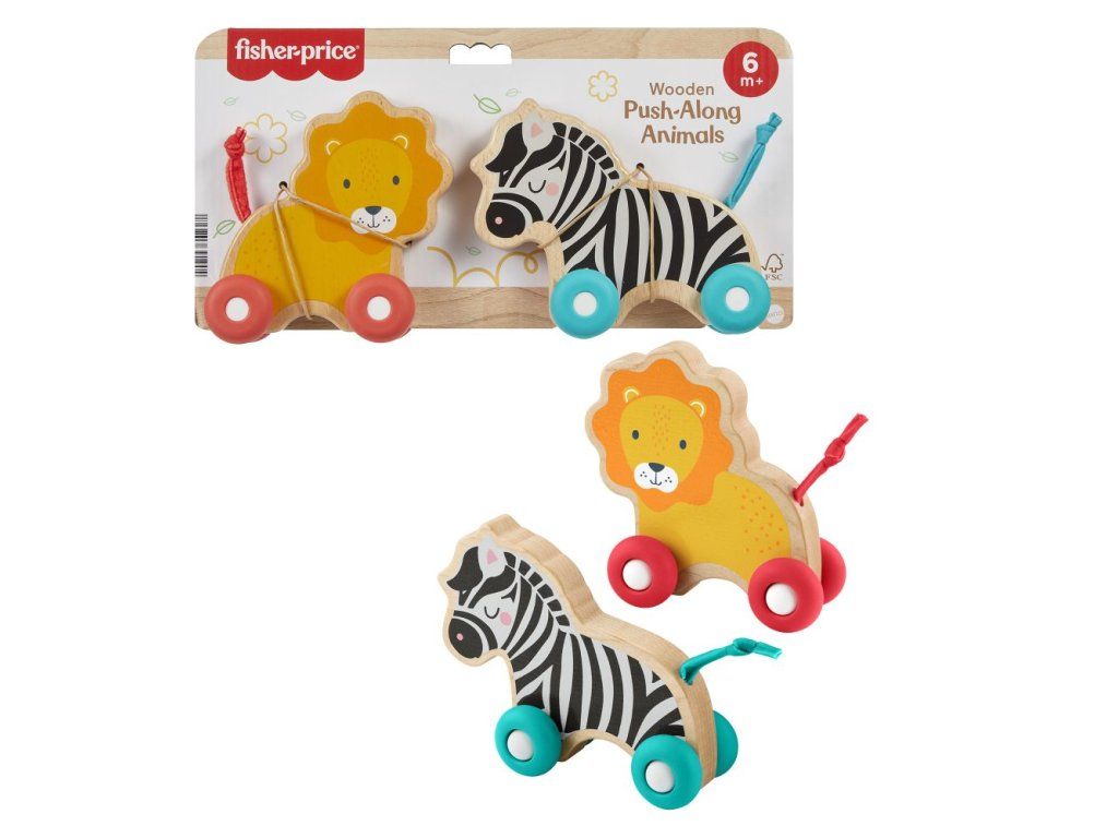 Fisher Price drevený postrkovací lev a zebra