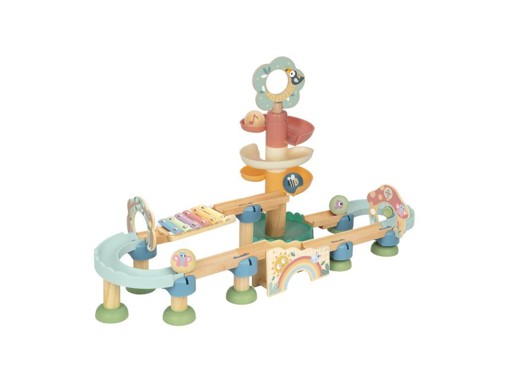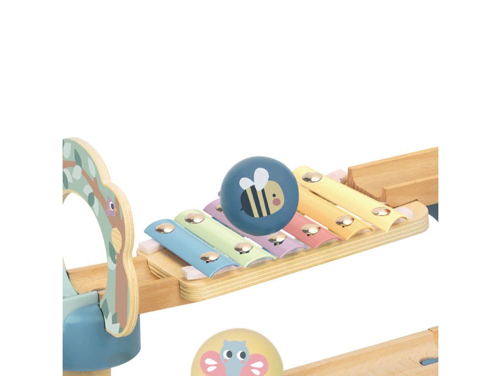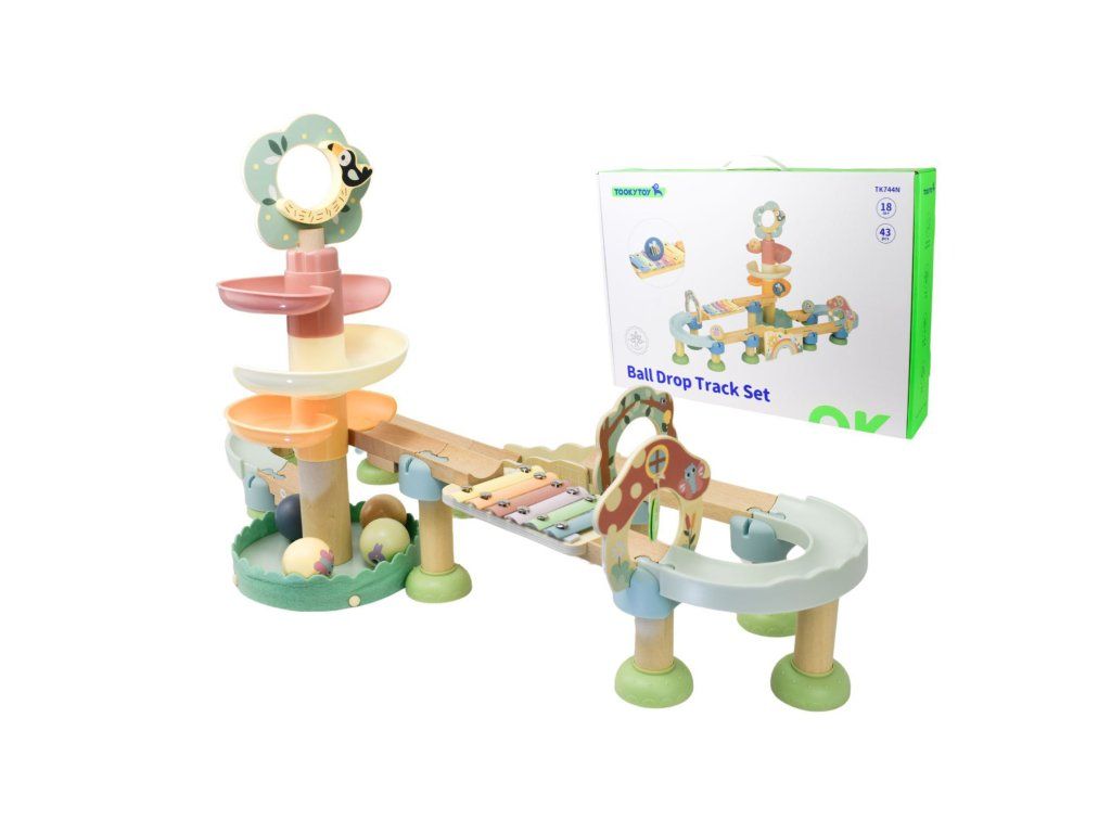 Guľôčková dráha Strom Pastel 44 ks Stavebnica má aj xylofón Drevená guličková dráha s tobogánom v podobe stromu a funkčným xylofónom od Tooky Toy deti úplne pohltia! Stavebnica v pastelových farbách obsahuje 44 dielikov a zábavných prvkov, vďaka ktorým si deti každý deň postavia inú guličkovú dráhu. Guľôčka tak zíde po tobogáne v podobe stromu, zahrá na xylofón, prejde pod oblúky, preskáče cez schodíky a dopadne do podstavca stromu. Tobogán v podobe stromu je možné využiť aj samostatne ako guličkovú dráhu pre najmenších!Stavanie dráhy rozvíja predstavivosť Deti si pri hre taktiež rozvíja svoju kreativitu a fantáziu, zlepšujú si jemnú motoriku alebo sa zoznamujú so základnými princípmi fyziky. Okrem toho ich stavanie aj pozorovanie guličky neskutočne zabaví. Guličky sú veľké a bezpečné! Drevené hračky pre deti Tooky Toy sú vyrobené z pevného kvalitného plastu a dreva natretého netoxickými farbami. Guľôčková dráha s domínom je vhodná pre deti od 3 rokov.Dodatočné parametre