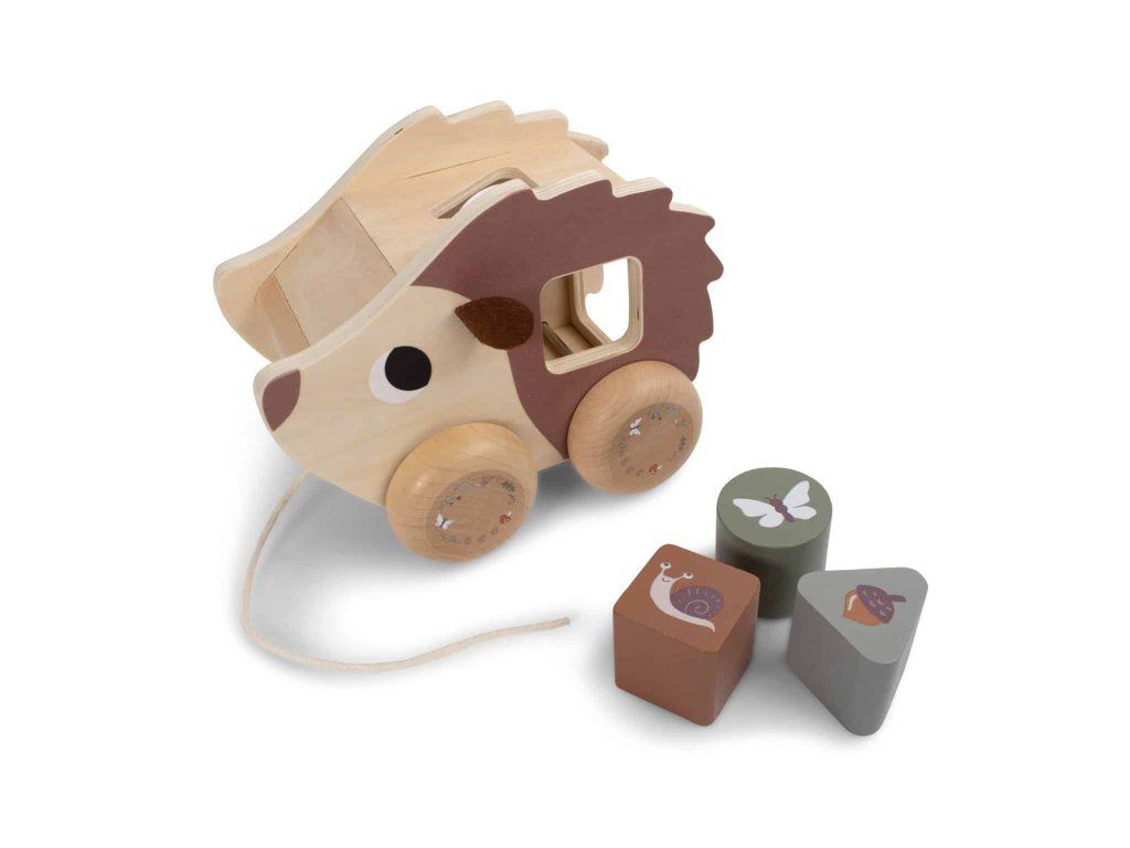 Dve najobľúbenejšie detské hračky v jednom: ježko na ťahanie a zároveň vkladačka tvarov. Tento malý ježko vás bude rád nasledovať po dome a vkladačka tvarov určite zamestná malé ručičky na nejaký čas. Triedič tvarov je skutočnou klasikou, ktorá by nemala chýbať v žiadnej detskej izbe, pretože zlepšuje koordináciu ruka-oko, jemnú motoriku a zručnosti pri riešení problémov – a to všetko pri zábave. Ťahacia hračka povzbudzuje dieťa k chôdzi a pomáha rozvíjať motorické zručnosti, pretože dieťa potrebuje uchopiť šnúrku a súčasne ťahať. Ťahací ježko je vyrobený z MDF schváleného FSC a dá sa ľahko utrieť vlhkou handričkou. Moje špeciálne vlastnosti:- Dve z najobľúbenejších detských hračiek v jednom.