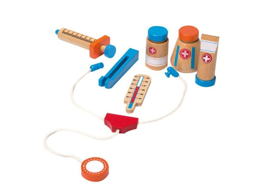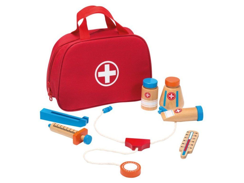 - sada obsahuje 1 doktorskú tašku + 7 kusov príslušenstva: stetoskop, teplomer, injekciu, pinzetu, tubu a 2 fľaštičky