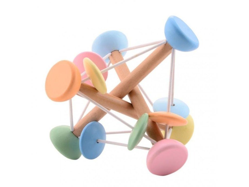 - drevené hrkálka v krásnych, pastelových farbách