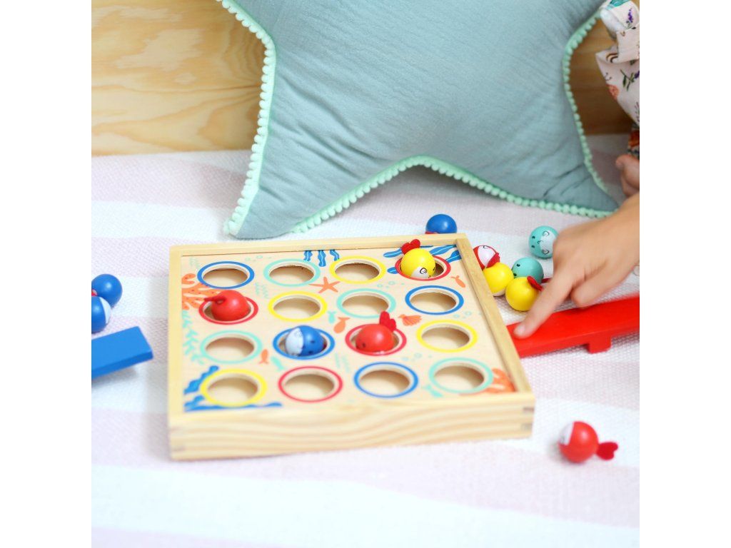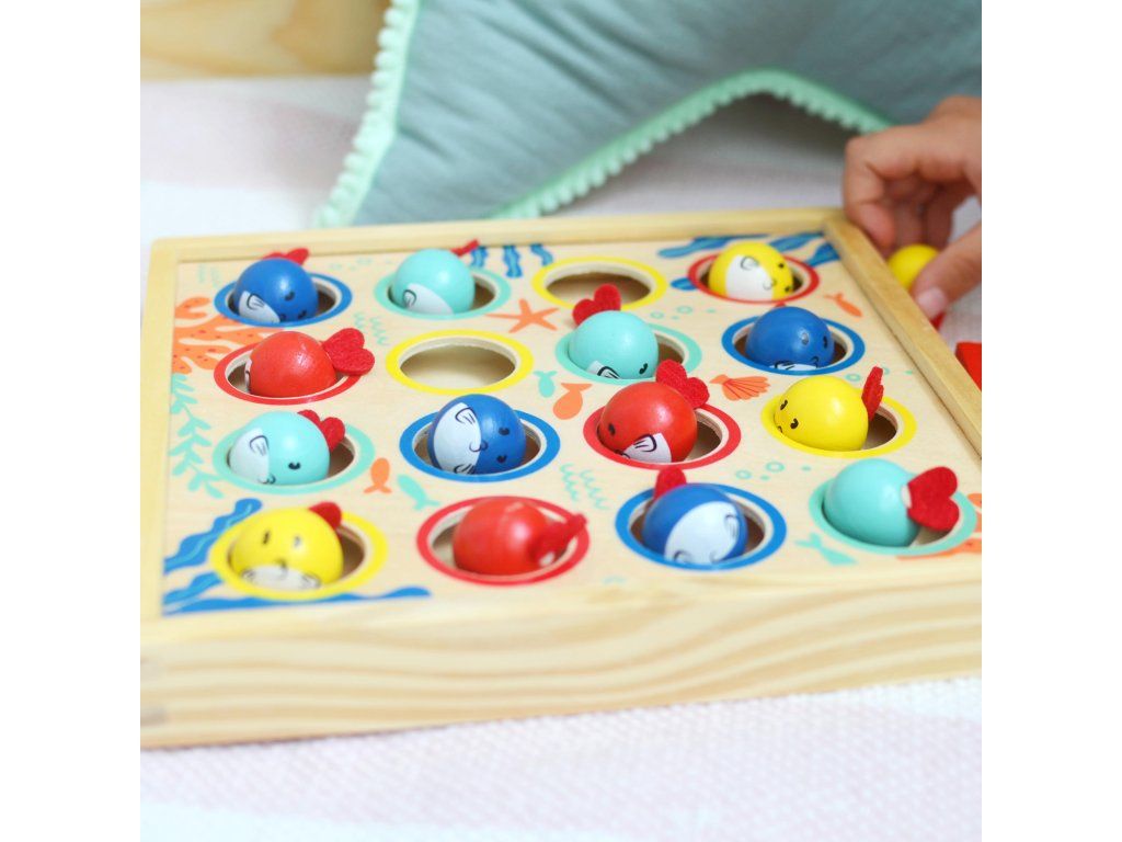Klobúčik, hop ! RybičkyZábavná navliekačka a hra na chytanie pre malých objaviteľovMalí rybári nastúpte! S touto drevenou hračkou môžu deti hodiť klobúk, chytit rybičku a naučiť sa pritom farby, tvary aj trpezlivosť. Navliekanie drobných dielikov pomáha jemnej motorike a tvorbe vlastných príbehov pri hre s rodičmi či kamarátmi.Hra, ktorá rozvíja a bavíprecvičuje jemnú motoriku a koordináciu ruka-oko pri navliekaní rybičiekpodporuje rozpoznávanie farieb, tvarov a základov triedeniaučí trpezlivosti a sústredeniu v jednoduchom, hravom formátevyrobené z odolného dreva s hladkými hranami a neutrál-farebným náteromDodatočné parametre