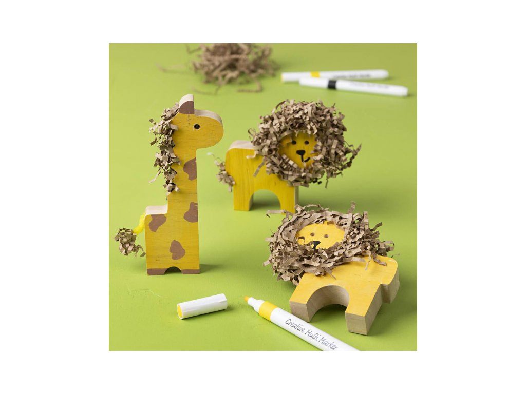 Originálna sada drevených safari zvieratiek na dozdobenie a hranie. Roztomilé figúrky zo masívneho dreva si deti môžu vyzdobiť podľa vlastnej fantázie – farbami, fixkami alebo kreatívnymi hmotami. Zvieratká sú dosť pevné na hranie a zároveň vyzerajú skvele ako dekorácia v detskej izbe.