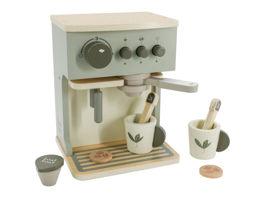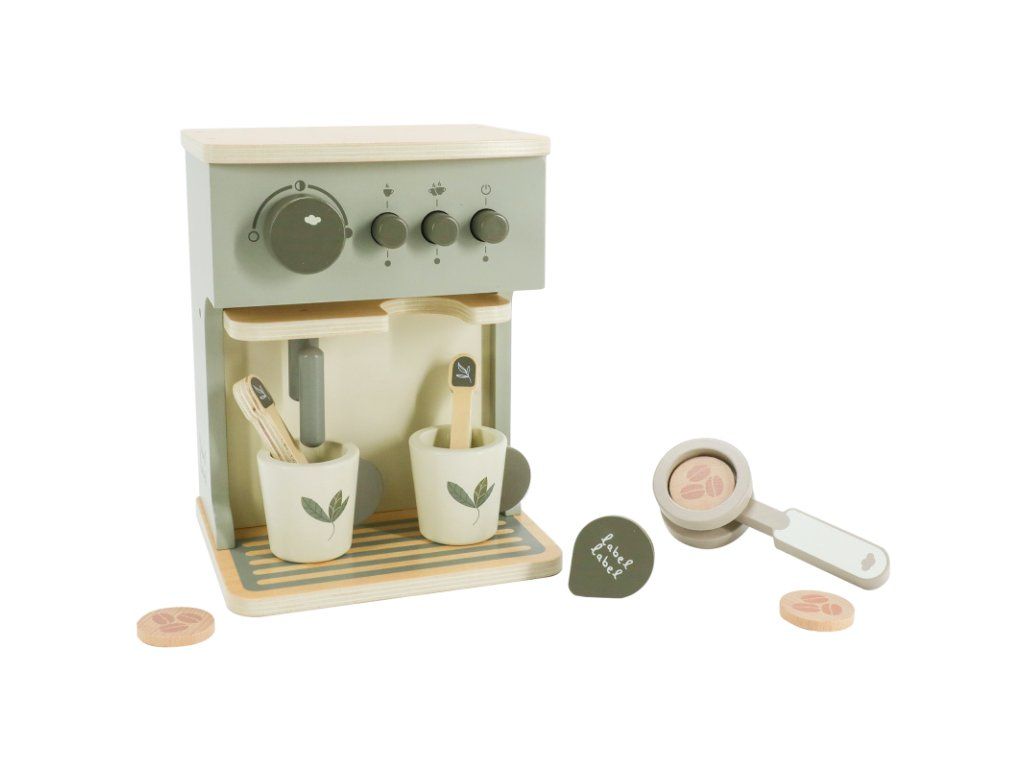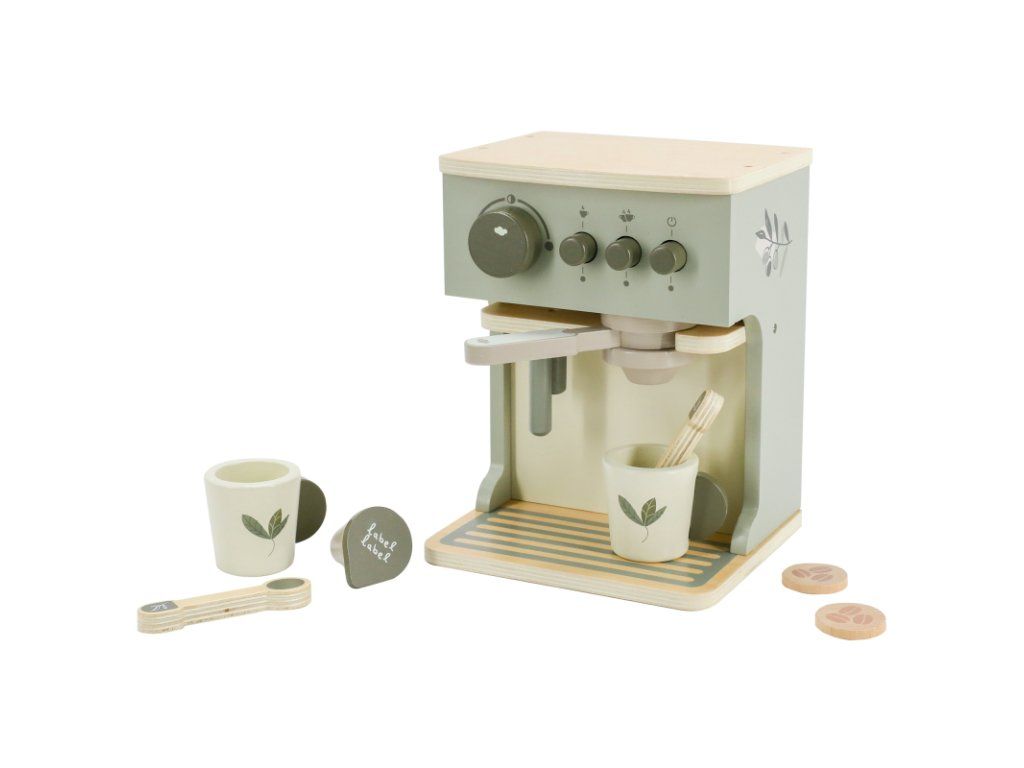 Pohodlne sa usaďte, relaxujte a vychutnajte si lahodné espresso, ktoré vám pripraví váš malý barista pomocou úžasného kávovaru z kolekcie drevených hračiek Label Label.