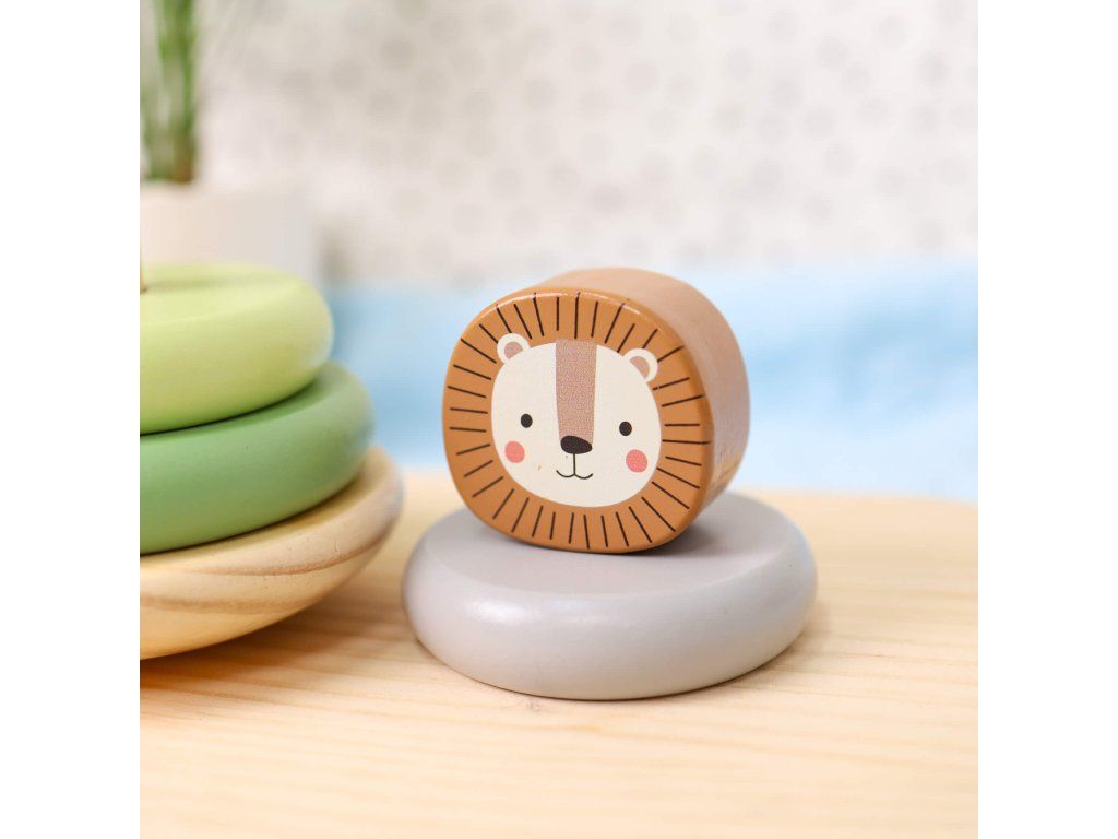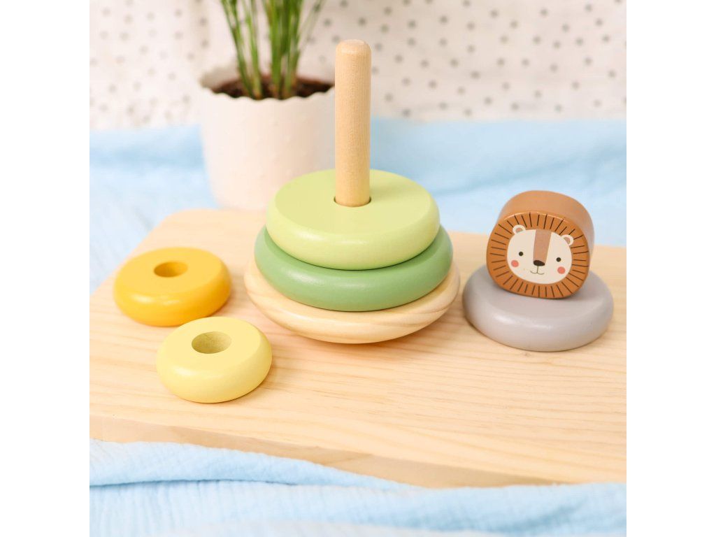 Nasadzovacie krúžky Lev Pastel Tradičná hračka s originálnym dizajnom Drevená pyramída Lev v pastelových farbách od Tooky Toy umožní deťom skladať zvieratko najrôznejšími spôsobmi. Na pevnú drevenú základňu s tyčkou môžu deti nasadiť 5 farebných krúžkov, ako sa im zapáči. Keď vytvorí z krúžkov levíčkovo telo, stačí už len nasadiť hlavička.Drevená pyramída Lev podporuje rozvoj detí Motorická nasadzovacia hračka podporuje rozvoj kreativity, jemnej motoriky, vnímania farieb, pozornosť aj trpezlivosť. Hračka je vyrobená s ohľadom na bezpečnosti detí a životné prostredie. Použiť farby sú netoxické a dermatologicky testované. Skvelý darček pre najmenšie deti!Dodatočné parametre