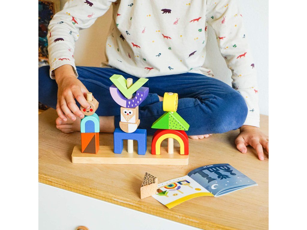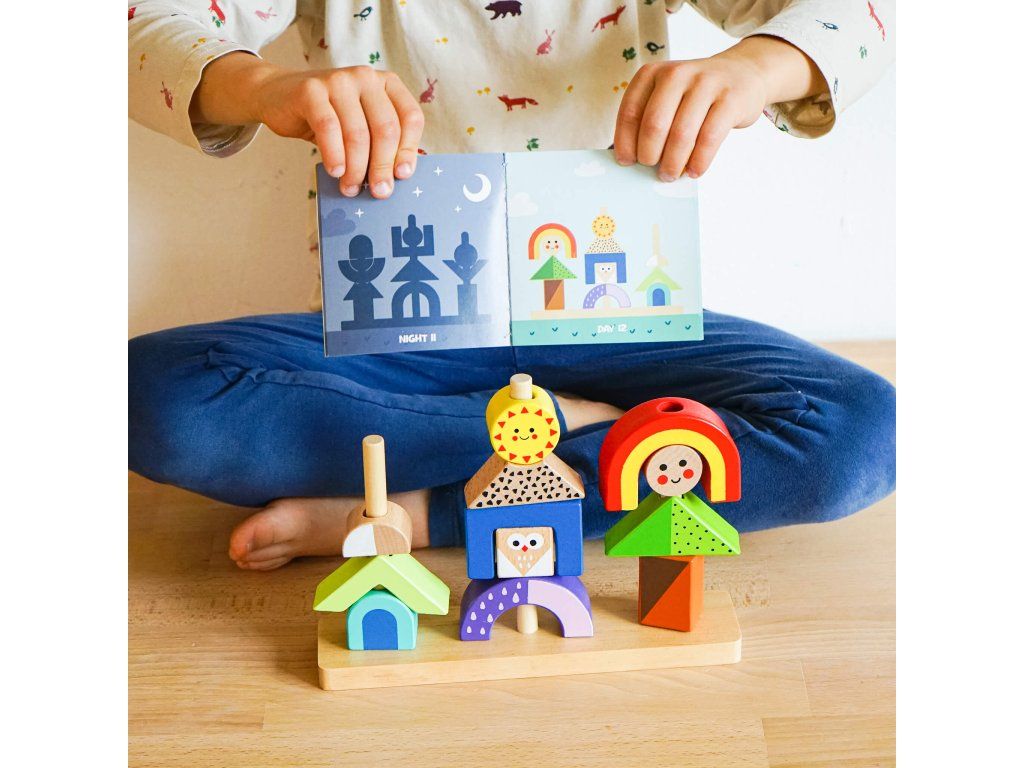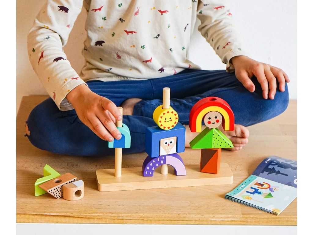 Nasadzovanie Tiene Deti nasadzujú kocky podľa tieňových predlôh Drevená logická hra Nasadzovanie Tiene je vyrobená z pevného dreva. Obsahuje 12 rozdielnych kociek, ktoré sú krásne farebné a maľované bezpečnými farbami. V balení nechýba ani základňa s tromi tyčkami na nasadzovanie a knižočka s 24 predlohami. Deti ale môžu kocky nasadzovať aj podľa seba. Fantázii sa medze nekladú.Hra rozvíja logické myslenie Predlohy sú len v podobe tieňa a deti tak len na základe obrysu hádajú, kam akú kocku nasadiť. Až stavbu dokonči, otočí stránku a podľa farebného obrázku zistí, či všetko poskladali správne. Deti si pri hre okrem logického myslenia taktiež cvičia pozorovacie schopnosti, rozpoznávanie tvarov, jemnú motoriku či koordináciu ruka-oko. Logická hra je vhodná pre deti od 3 rokov.Dodatočné parametre