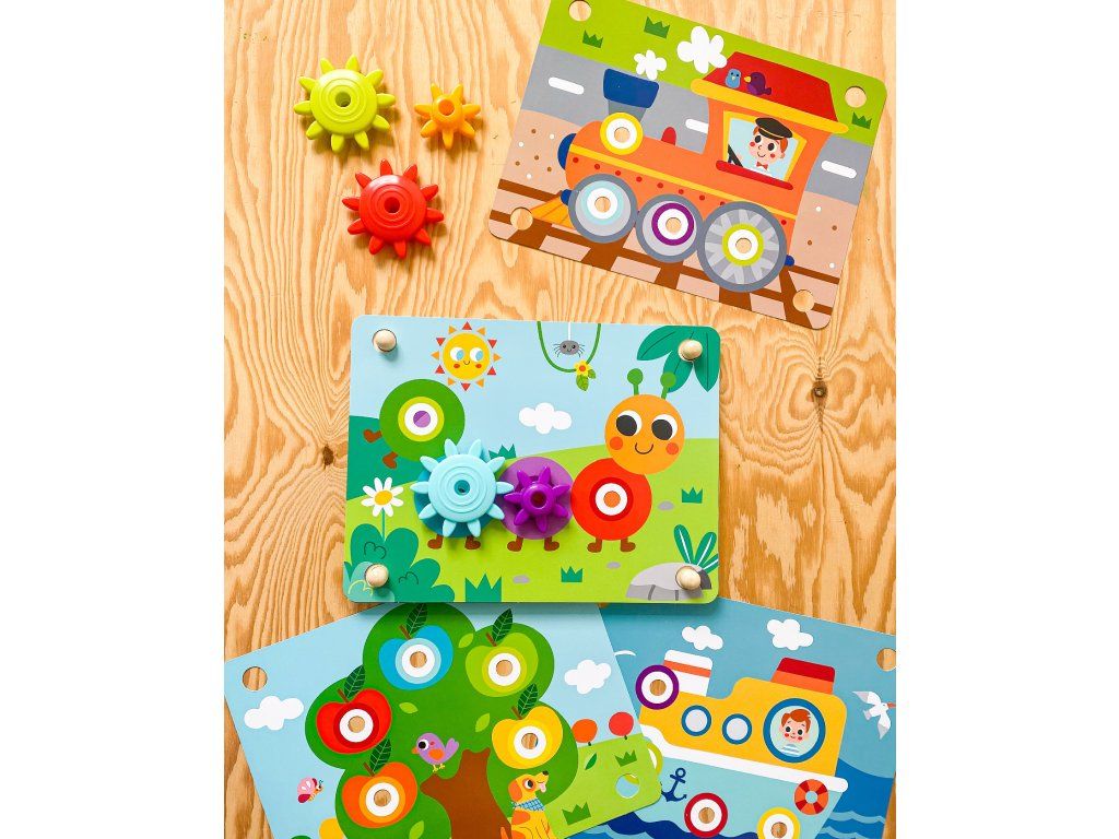 Ozubené kolieska pre najmenších Skladačka pre malých inžinierov! Ozubené kolieska pre deti od Tooky Toy sa stanú obľúbenou hračkou aj tých najmenších detičiek. Na veľkú drevenú dosku pripevníte jeden zo 6 obrázkov a detičky potom už samy do dierok v obrázkoch vkladajú 6 rôzne veľkých a farebných ozubených koliesok. Pokiaľ sa ich deťom podarí zložiť správne, kolieska do seba krásne zapadnú, stačí otočiť jedným a budú sa točiť všetky. Pokiaľ sa to nepodarí, nevadí, koliesko je vždy možné presunúť a skúsiť znova.Ozubené kolieska vzbudzujú záujem o mechaniku Hra s ozubenými kolieskami podporuje predstavivosť a poskytuje možnosť experimentovať s jednoduchou mechanikou. V deťoch prebúdza aj záujem o vedu, techniku či fyziku. Hra zlepšuje jemnú motoriku a logické myslenie. Hračky pre deti od Tooky Toy sú bezpečné, dobre opracované a natreté netoxickými farbami. Hra je vhodná už pre deti od 18 mesiacov.Dodatočné parametre