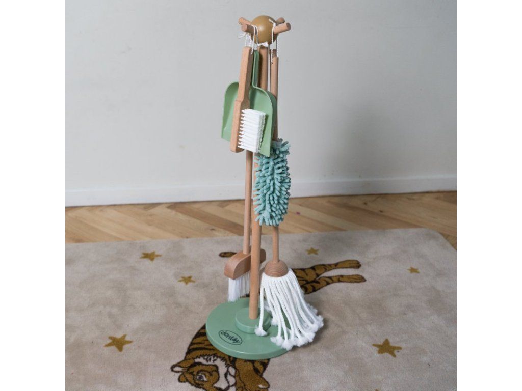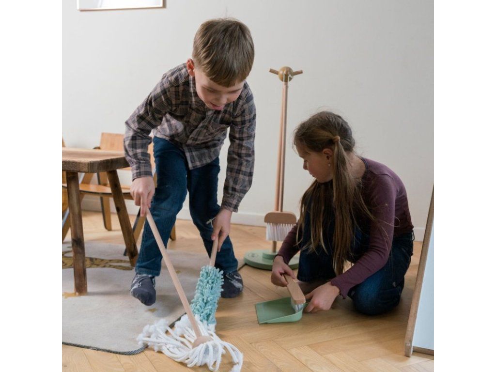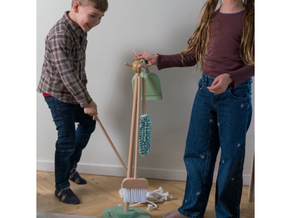 - drevená súprava na upratovanie pre rolu pomocníka v domácnosti