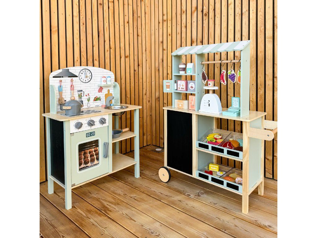 Predajný stánok Fresh pastel Hra na predavača a zákazníka Nakupovanie nikdy nebolo zábavnejšie. Deti môžu v tomtopredajnom stánku predávať potraviny ako v skutočnom obchode. Odvážiť ich na váhe
