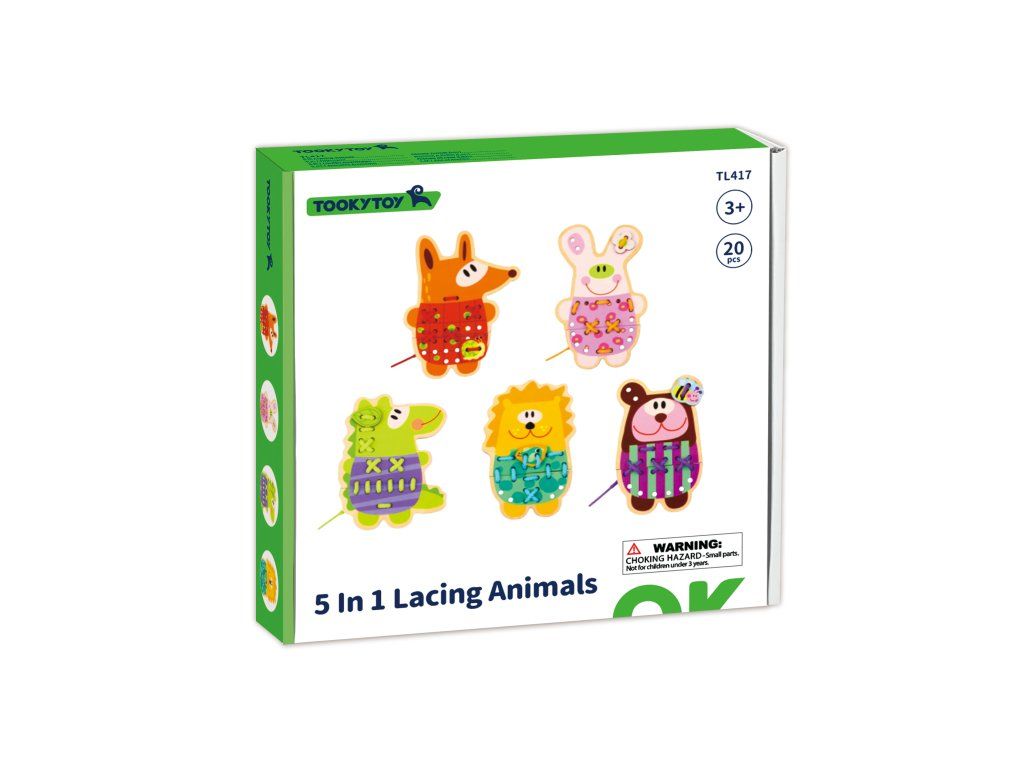 Prevliekanie Zvieratká Prezleč všetky zvieratá podľa vlastnej chuti. Sada obsahuje 5 zvieratiek, ktorým deti môžu za pomoci 5tich šnúrok poprevliekať, povvyšívať ich oblečenie. Prevliekanie krásne precvičuje jemnú motoriku, koncentráciu a trpezlivosť.Dodatočné parametre