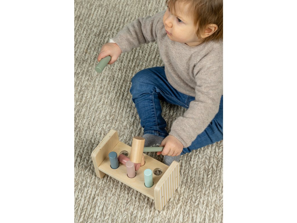 Klasická a obľúbená hračka, ktorá umožňuje deťom „pracovať“ s kladivom.