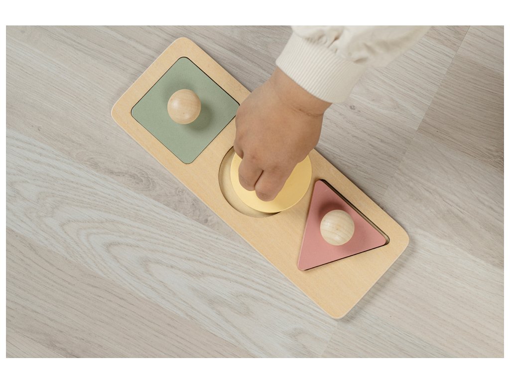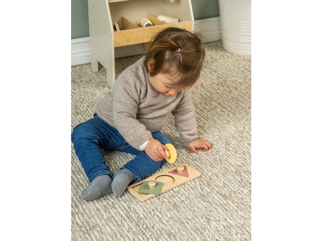 Veľké drevené gombíky sú prispôsobené pre malé rúčky, takže sa s puzzle ľahko manipuluje.