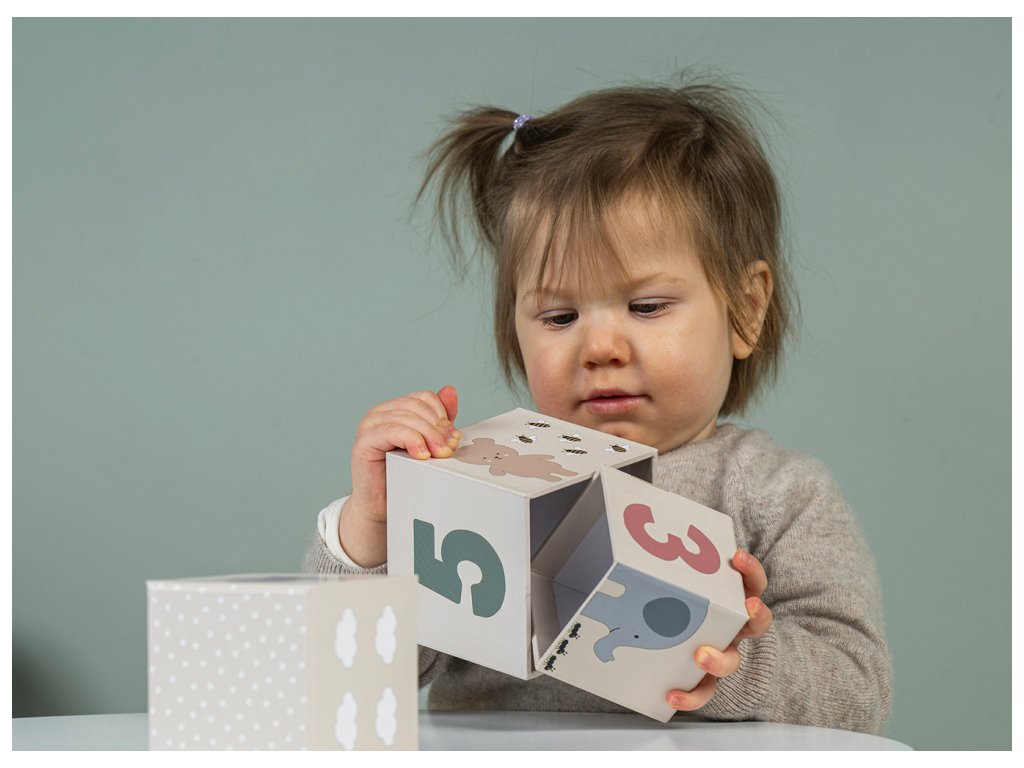 Zábavná stohovacia veža z rôznych kociek učí deti balansovať predmety a zároveň rozvíja ich matematické zručnosti – pochopenie veľkostí, poradia, porovnávania a výšky.
