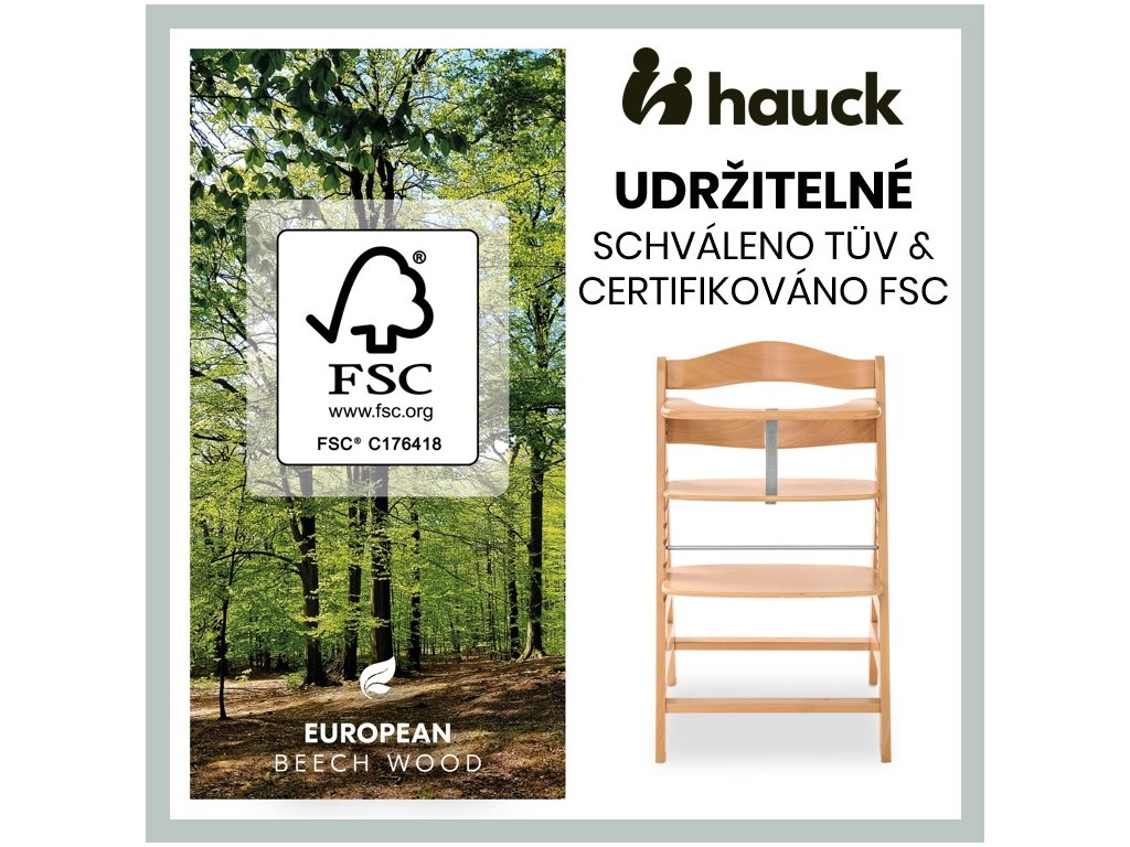 Udržateľný životný štýl // Naša ALPHA + je pravý prírodný produkt z dorastajúceho európskeho bukového dreva. Hauck tak prispieva k ochrane životného prostredia a už dnes pomýšľa na budúcu generáciu rodičov.