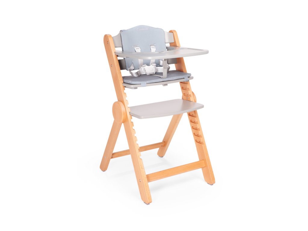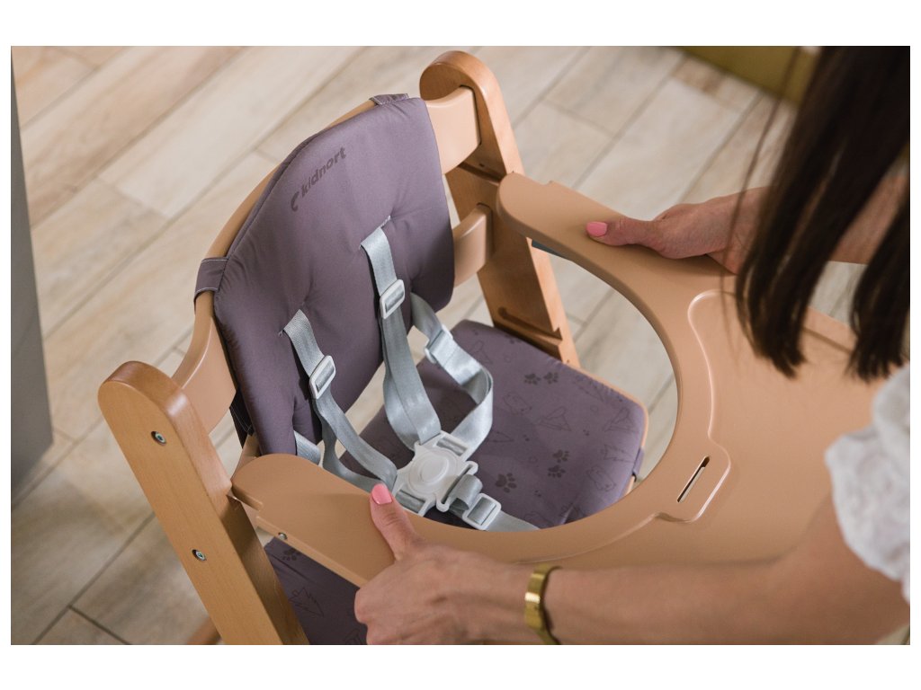 Tácka stoličky má jednoduchý systém demontáže, ktorý umožňuje rýchle prispôsobenie rôznym situáciám. Intuitívne vkladanie a vyberanie tácky a sedátka uľahčuje ľahký výber vhodného nastavenia podľa preferencií dieťaťa.