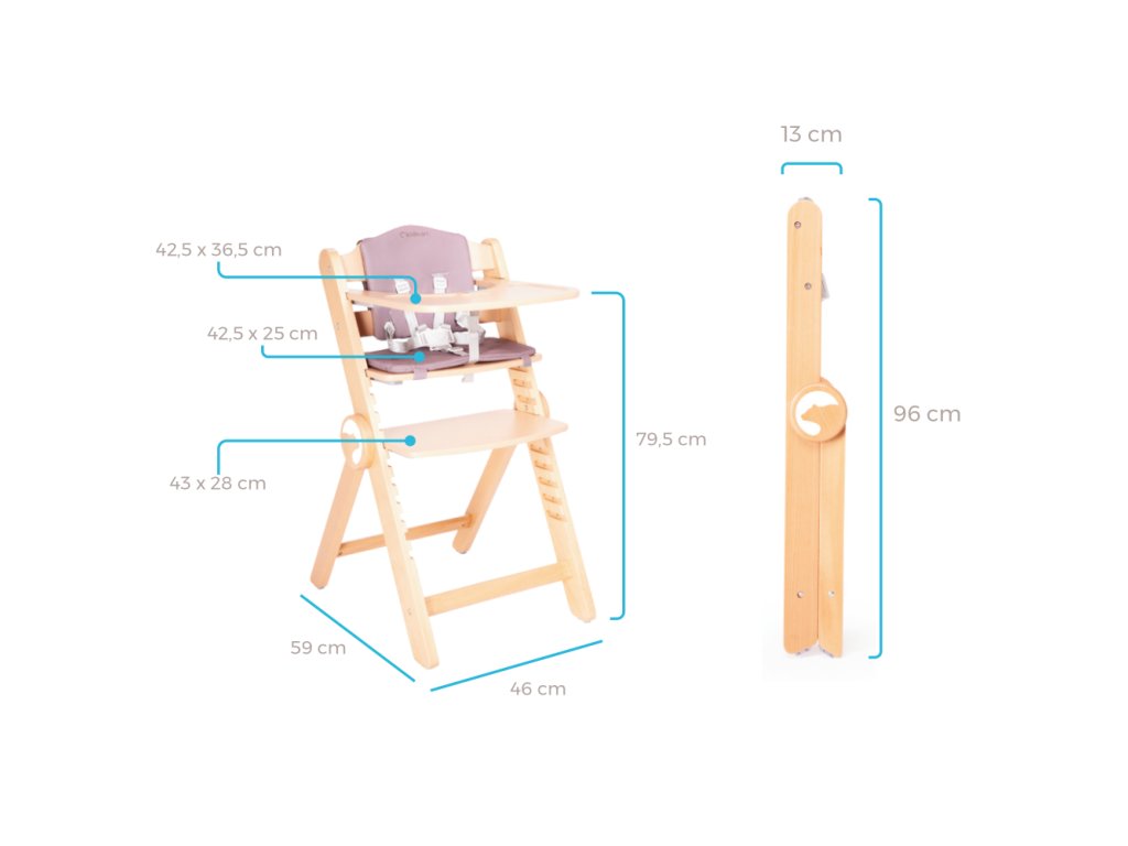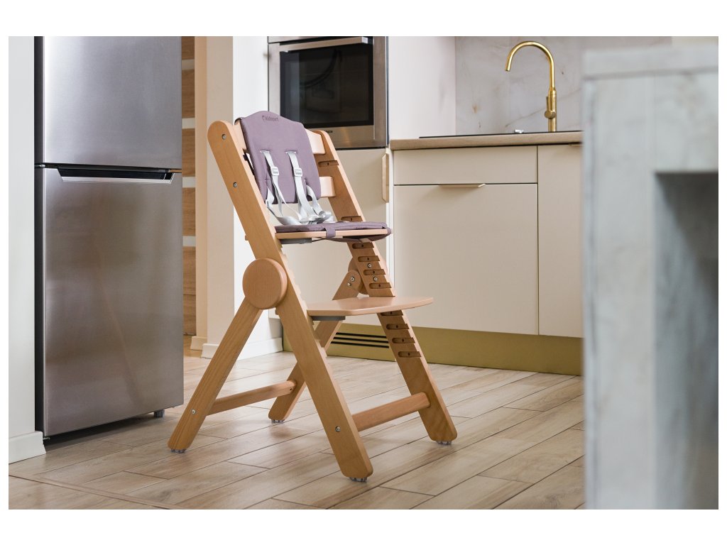 Stolička je vyrobená z buku a vyznačuje sa mimoriadnou odolnosťou a elegantným vzhľadom, vďaka prírodným vláknam a charakteristickej farbe bukového dreva. Jeho pevná konštrukcia zaisťuje stabilitu pri používaní, čo z neho robí nielen estetickú, ale aj praktickú voľbu pre rodičov.
