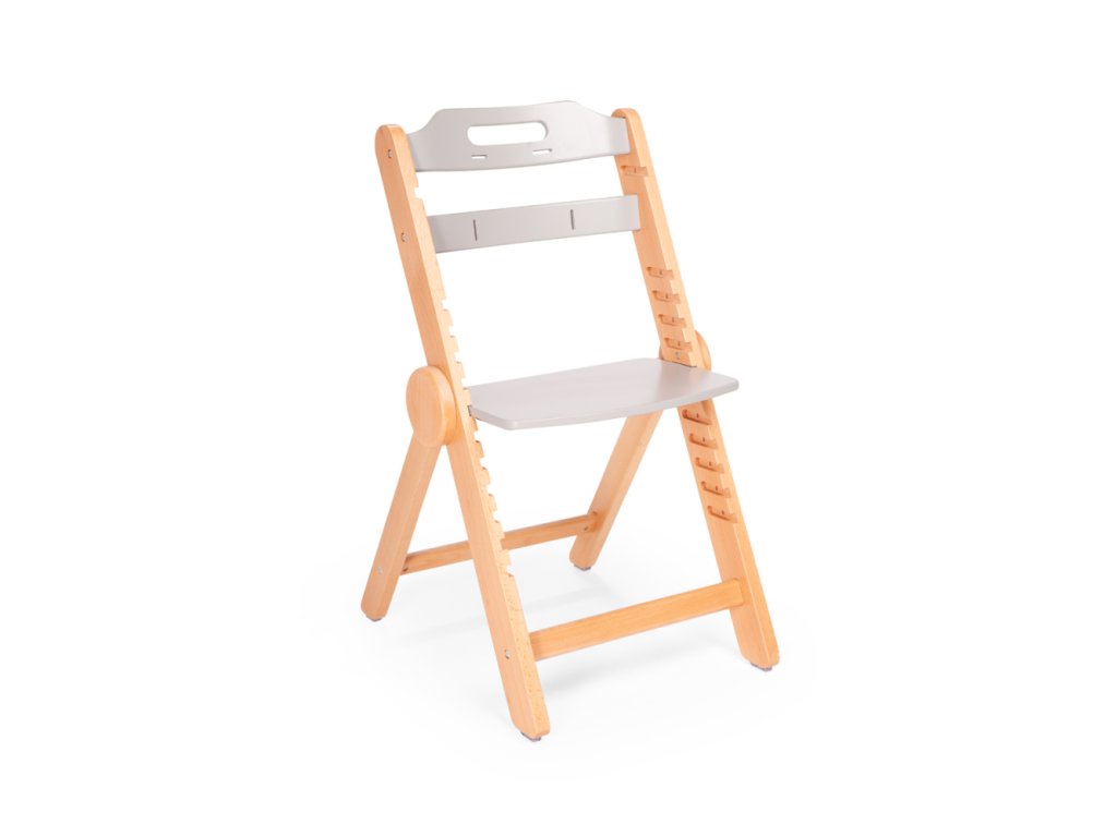 Drevená stolička s 11 výškovými nastaveniami, vyrobená z bukového dreva, zaisťuje pohodlie a flexibilitu použitia, dokonale sa prispôsobí rôznym výškam stolov a výške dieťaťa.