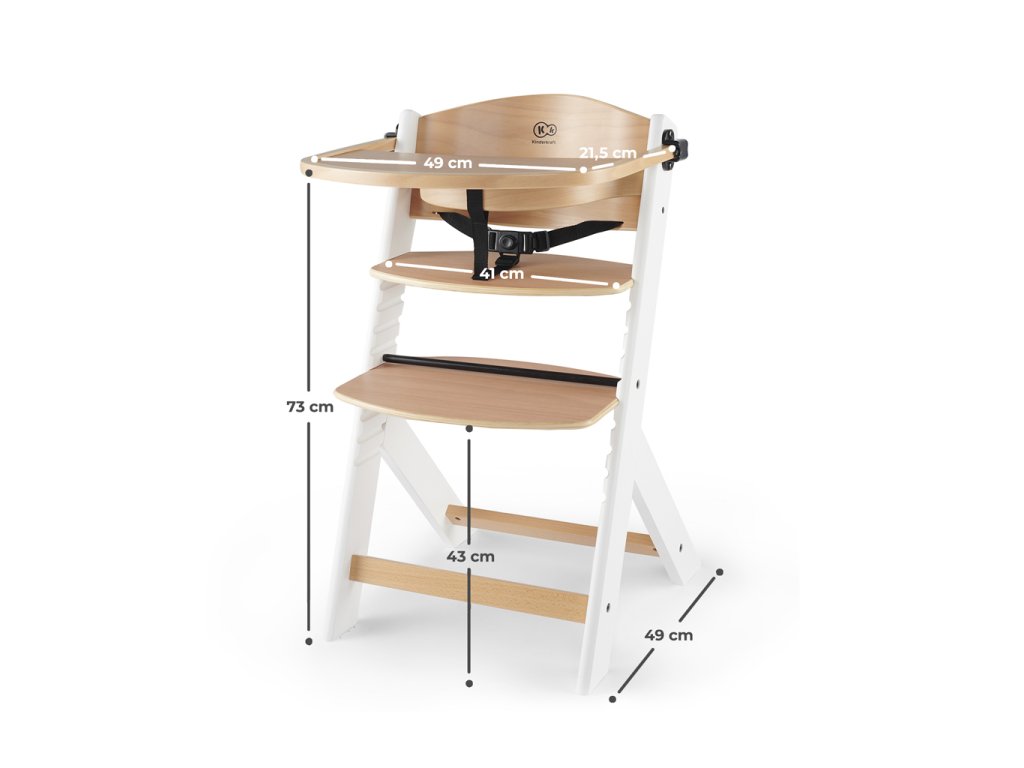 - 3bodové bezpečnostné pásy na vysokej stoličke, ktoré možno ľahko demontovať pri premene ENOCK na stoličku pre staršie dieťa.