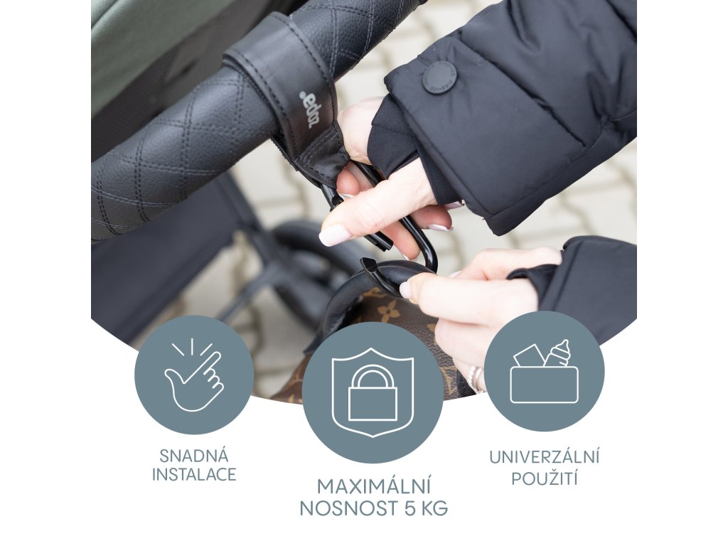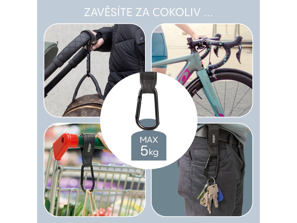 Uľahčite si každodenné pochôdzky s multifunkčným popruhom so skobou Deluxe! Vďaka jednoduchej inštalácii pomocou suchého zipsu pevne pripevní prebaľovaciu tašku, kabelku alebo nákupnú tašku na rukoväť kočíka. Robustná kovová skoba bez problémov unesie aj ťažšie predmety a univerzálny dizajn zaisťuje kompatibilitu so všetkými typmi kočíkov a nákupných vozíkov.
