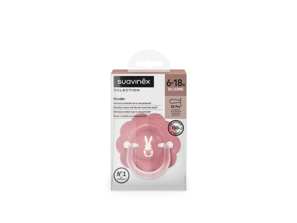 SUAVINEX | Cumlík SX PRO fyziologický WONDERLAND NEW 6/18m - tmavoružový králik