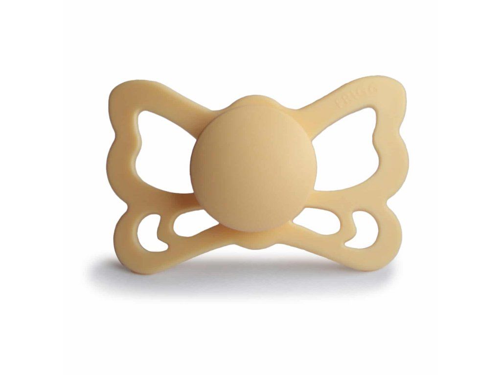 ANATOMICKÝ CUMLÍK FRIGG BUTTERFLY PALE DAFFODIL, 6-18M, SILIKÓN