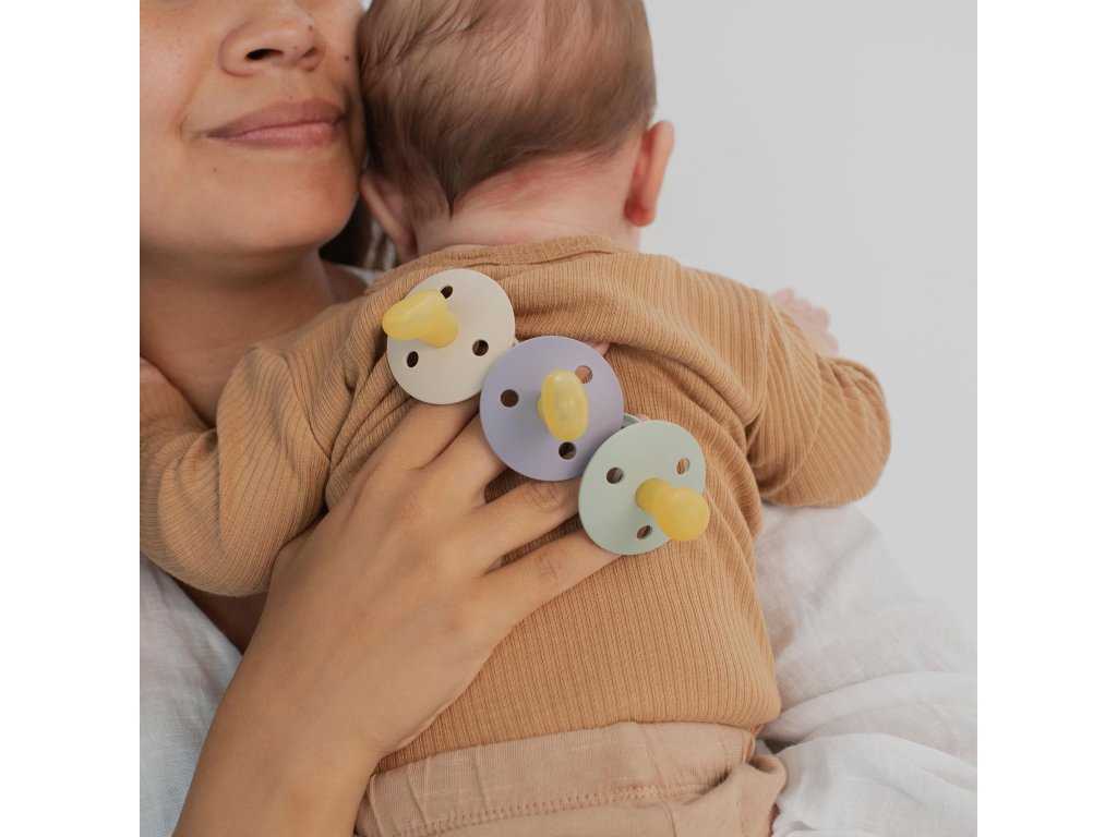 Obľúbené BIBS Colour cumlíky teraz aj v ortodontických verziách – symetrický tvar alebo anatomický tvar. BIBS dobývajú celý svet. Jednoduché a štýlové. Ikonické cumlíky navrhnuté a vyrábané v Dánsku už od roku 1978. Ich minimalistický škandinávsky dizajn a široký farebný výber sú pre BIBS cumlíky typické. Všetky BIBS produkty sú garanciou najvyššej kvality detského sortimentu. Sacia časť je vyrobená zo 100%-ného prírodného kaučuku, ktorý je mimoriadne pružný a mäkký zároveň, odolný voči vytvoreniu trhlín a odštiepeniu malých kúskov. Cumlík je navrhnutý tak, aby nedráždil citlivú pokožku bábätka. Okrúhly krúžok s vetracími otvormi má klenutý tvar, takmer vôbec sa nedotýka pokožky okolo úst, tá preto zostáva kľudná, bez otlačkov a podráždení. Vďaka mäkučkému kaučuku a zabudovanému vzduchovému ventilu dieťa cumlík ľahko stláča a formuje v ústach, čím je zachovaný prirodzený vývin podnebia, ďasien a zúbkov detí. Prečo deti aj rodičia obľubujú cumlíky BIBS Colour? Extra ľahučký. Vďaka špeciálnemu klenutému tvaru krúžku je minimalizovaný dotyk cumlíka s pokožkou a nevznikajú otlačky a podráždenia. Na výber 3 rôzne tvary sacej časti (okrúhla čerešničková, symetrická a anatomická) – každému bábätku vyhovuje iný tvar. Dieťa saje len 100% prírodný bezpečný materiál – kaučuk vyrobený z miazgy stromu Hevea. Výnimočná chuť prírodného kaučuku, deti ho prirodzene uprednostňujú pred syntetickými materiálmi. Štýlový dizajn v mnohých farebných prevedeniach. Vyrobené v EU. Zloženie: Sacia časť: 100% prírodný kaučuk Ostatné časti: polypropylén (PP) potravinárskej kvality. Bez BPA, PVC, ftalátov a iných škodlivých látok. Vyrobené v Dánsku. Testované v Consumer Lab Denmark. V súlade s európskym štandardom EN 1400+A2. Veľkosti: BIBS Colour symetrické cumlíky sú k dispozícii v 2 veľkostiach. Veľkosť 1: 0-6 mesiacov Veľkosť 2: od 6 mesiacovDodatočné parametre
