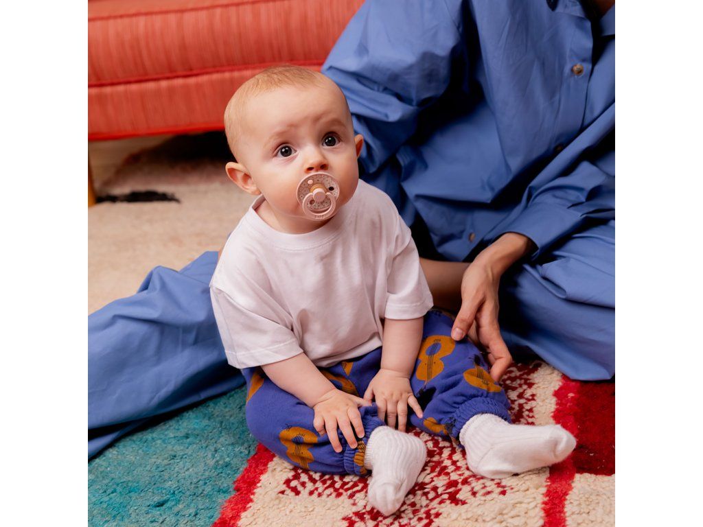Renomovaná francúzska dizajnérka Glitter Power Club vytvorila pre BIBS exkluzívnu sadu potlačí a BIBS tak opäť prináša nový a svieži vietor do sveta detských produktov. Kolekcia BIBS Studio je inšpirovaná aktuálnymi trendami v dizajne, experimentuje s potlačou inovatívnym spôsobom a BIBS tak naďalej určuje trendy v rodičovstve. BIBS dobývajú celý svet. Jednoduché a štýlové. Sacia časť je vyrobená zo 100% prírodného kaučuku, ktorý je mimoriadne pružný a mäkký zároveň, odolný voči vytvoreniu trhlín a odštiepeniu malých kúskov. Cumlík je navrhnutý tak, aby nedráždil citlivú pokožku bábätka. Okrúhly krúžok s vetracími otvormi má klenutý tvar, takmer vôbec sa nedotýka pokožky okolo úst, tá preto zostáva kľudná, bez otlačkov a podráždení. Vďaka mäkučkému kaučuku a zabudovanému vzduchovému ventilu dieťa cumlík ľahko stláča a formuje v ústach, čím je zachovaný prirodzený vývin podnebia, ďasien a zúbkov detí. Prečo deti aj rodičia obľubujú cumlíky BIBS Colour? Extra ľahučký. Vďaka špeciálnemu klenutému tvaru krúžku je minimalizovaný dotyk cumlíka s pokožkou a nevznikajú otlačky a podráždenia. Guľatý / čerešničkový tvar sacej časti si často obľúbia aj deti, ktoré odmietajú iné tvary cumlíka. Dieťa saje len 100% prírodný bezpečný materiál – kaučuk vyrobený z miazgy stromu Hevea. Výnimočná chuť prírodného kaučuku, deti ho prirodzene uprednostňujú pred syntetickými materiálmi. Štýlový dizajn v mnohých farebných prevedeniach. Vyrobené v EU. Zloženie : Sacia časť: 100% prírodný kaučuk Ostatné časti: polypropylén (PP) potravinárskej kvality. Bez BPA, PVC, ftalátov a iných škodlivých látok. Vyrobené v Dánsku. V súlade s európskym štandardom EN 1400+A2. Veľkosti: BIBS Studio Colour cumlíky sú k dispozícii v 2 veľkostiach: Veľkosť 1: 0 - 6 mesiacov. Veľkosť 2: 6 - 18 mesiacov. Vekové odporúčanie veľkostí je len orientačné, každé dieťa môže mať iné potreby a preferencie.Dodatočné parametre