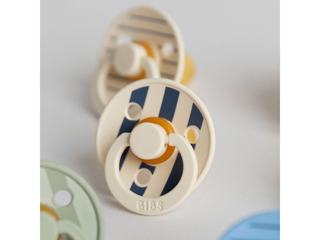 Kolekcia BIBS STUDIO prináša svieži vietor do sveta detských produktov. Experimentuje s dizajnovou potlačou obľúbených cumlíkov a vytvára priestor na vyjadrenie Vášho jedinečného štýlu.Sacia časť BIBS STUDIO Colour cumlíkov je vyrobená zo 100% prírodného kaučuku, ktorý je mimoriadne pružný a mäkký zároveň, odolný voči vytvoreniu trhlín a odštiepeniu malých kúskov. Cumlík je navrhnutý tak, aby nedráždil citlivú pokožku bábätka. Okrúhly krúžok s vetracími otvormi má klenutý tvar, takmer vôbec sa nedotýka pokožky okolo úst, tá preto zostáva kľudná, bez otlačkov a podráždení. Vďaka mäkučkému kaučuku a zabudovanému vzduchovému ventilu dieťa cumlík ľahko stláča a formuje v ústach, čím je zachovaný prirodzený vývin podnebia, ďasien a zúbkov detí.Prečo deti aj rodičia obľubujú cumlíky BIBS Colour? Extra ľahučký. Vďaka špeciálnemu klenutému tvaru krúžku je minimalizovaný dotyk cumlíka s pokožkou a nevznikajú otlačky a podráždenia. Guľatý / čerešničkový tvar sacej časti si často obľúbia aj deti, ktoré odmietajú iné tvary cumlíka. Dieťa saje len 100% prírodný bezpečný materiál – kaučuk vyrobený z miazgy stromu Hevea. Výnimočná chuť prírodného kaučuku, deti ho prirodzene uprednostňujú pred syntetickými materiálmi. Štýlový dizajn v mnohých farebných prevedeniach. Vyrobené v EU. Zloženie : Sacia časť: 100% prírodný kaučuk Ostatné časti: polypropylén (PP) potravinárskej kvality. Bez BPA, PVC, ftalátov a iných škodlivých látok. Vyrobené v Dánsku. V súlade s európskym štandardom EN 1400+A2.Dodatočné parametre