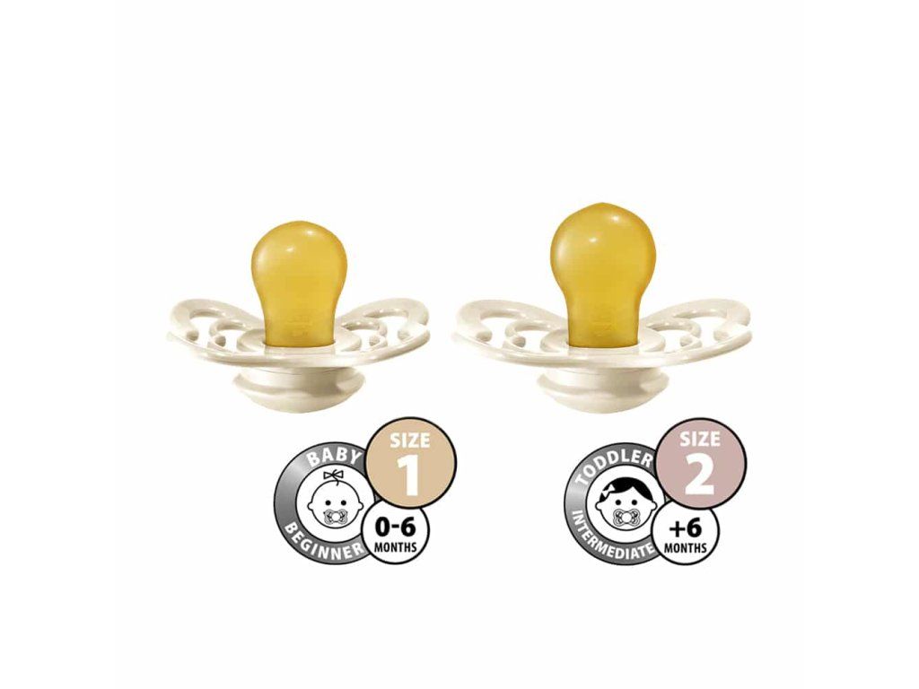 BIBS Supreme symetrické cumlíky z prírodného kaučuku 2ks - veľkosť 1,Honey Bee / Olive