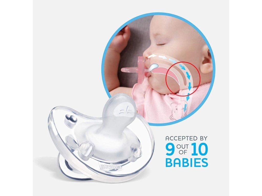 Celosilikónový cumlík Chicco Physio Soft rady Physioforma je unikátny aktívny ortodontický upokojujúci cumlík vyrobený z jedného kusu bez rušivých spojov. Celý cumlík je zo 100 % hygienického silikónu s hodvábnym finišom, teda z materiálu, ktorý sa nedeformuje, jeho povrch je extra hebký a jemný a vhodný aj pre tú najcitlivejšiu pokožku.Ergonomický tvar cumlíka dokázateľne podporuje správne fyziologické dýchanie novorodencov. Napomáha polohe jazyka smerom na podnebie, teda smerom dopredu a hore, a tak učí dieťatko dýchať správne nosom už od narodenia. Okrem toho tento anatomický cumlík podporuje správny vývoj čeľuste. Nesprávne dýchanie ústami, od ktorého ergonomický tvar cumlíkov Chicco Physioforma deti odnaučí, totiž zvyšuje riziko SIDS, a tiež prispieva k nesprávnemu vývoju úst a sánky.