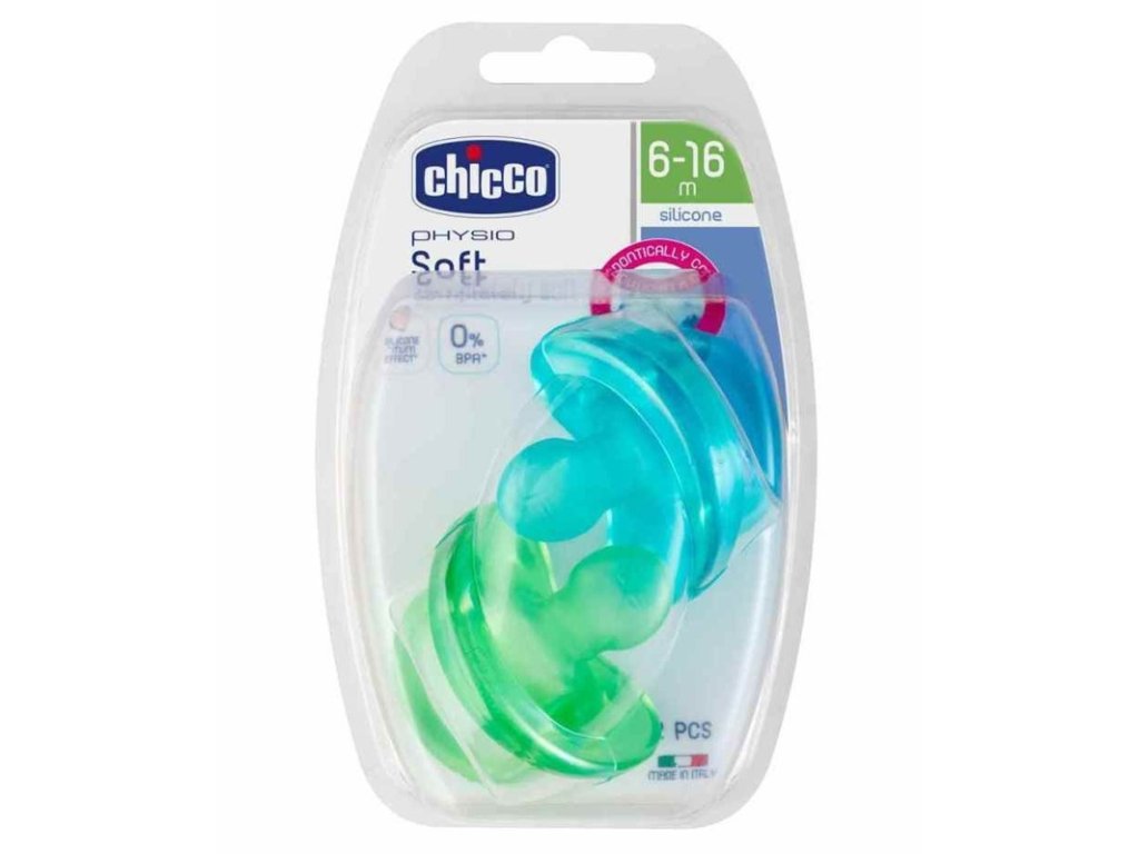 CHICCO Cumlík Physio Soft celosilikónový 6-16m chlapec 2 ks