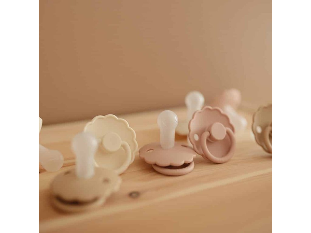 Cumlík je vyrobený zo silikónu medicínskeho stupňa s novým povrchom SilkySoft™, ktorý predstavuje najvyššiu kvalitu silikónu s ešte mäkším povrchom ako predtým, pre prirodzenejšie satie a ešte bezpečnejšiu voľbu pre detské podnebie a ďasná. Každý cumlík je strojovo testovaný na závadnosť, aby sa k našim najdôležitejším zákazníkom dostal vždy perfektný produkt. Tvar štítu je zakrivený jemne smerom von, aby sa zabránilo podráždeniu pokožky. Pre väčšiu bezpečnosť sú v štíte prítomné vzduchové otvory. Nový Click-lock™ systém odlišuje cumlík FRIGG od akéhokoľvek iného cumlíku na trhu. Vďaka novému 4-krokovému procesu spájania jednotlivých častí cumlíka je možné cumlík zostaviť jednoduchým kliknutím, bez použitia akejkoľvek sily. Vďaka tomu je cumlík ešte odolnejší ako predtým. FRIGG je 100% dizajnovaný a vyrobený v Dánsku ako jediná značka cumlíkov na svete! Každý cumlík je zároveň vyrobený na princípe zero-waste, čím sa minimalizuje odpad materiálu vďaka možnosti recyklácie. Cumlíky sú vyrábané s maximálny ohľadom na životné prostredie, a zároveň s dôrazom na uspokojenie potrieb najmenších detí. FRIGG kladie dôraz aj na bezpečnosť - cumlíky sú vyrábané bez BPA, PVC a ftalátov, každý cumlík podstupuje stretch a vacuum test pred uvedením do predaja a sú vyrábané podľa najprísnejšej normy EN1400-A2. Spoznajte svet značky FRIGG, inšpirovaný bohyňou zeme, vzduchu a plodnosti podľa severskej mytológie a nechajte sa zlákať dokonalosťou tvarov a farieb. Cumlík FRIGG Daisy s vrúbkovanými okrajmi, ktoré napodobňujú lupene kvetov, je základom elegantného dizajnu. Kvetinové a moderné detaily upútajú pozornosť každej štýlovej mamičky. Vďaka tomu sa FRIGG perfektne hodí pre dnešné matky, ktoré pri výbere základných potrieb pre bábätko prikladajú veľký význam klasickému dizajnu s modernými prvkami. Vlastnosti:- 100% navrhnuté v Dánsku