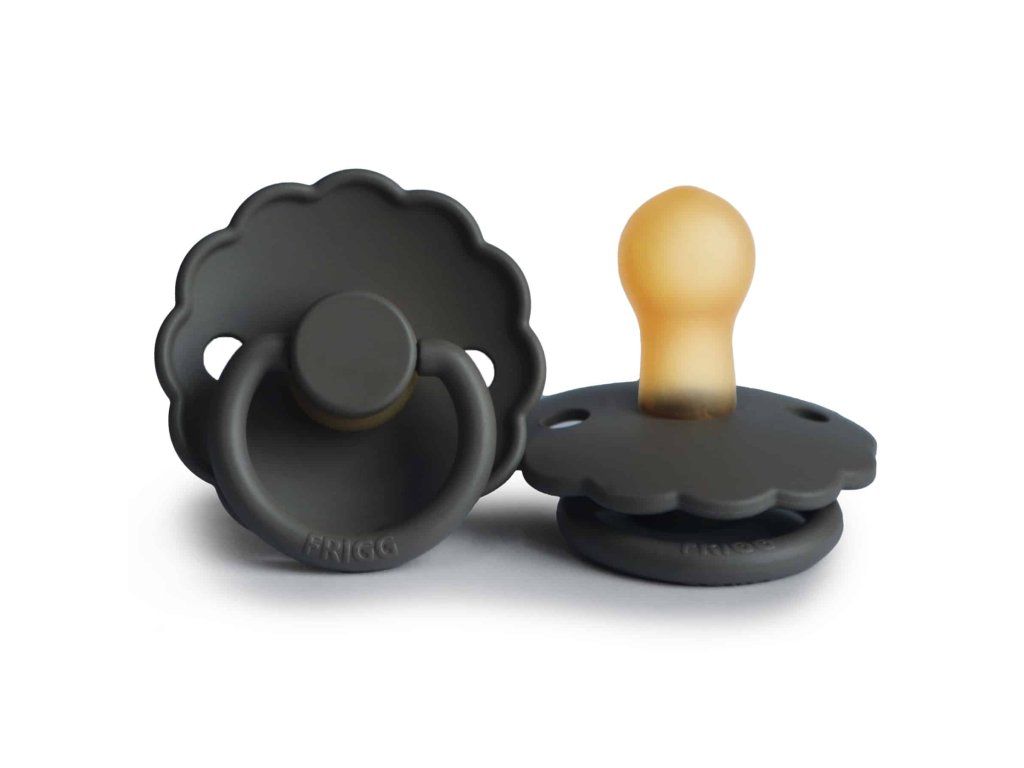 Cumlík je vyrobený z prírodného kaučuku, pričom jeho tvar je zakrivený jemne smerom von, aby sa zabránilo podráždeniu pokožky. Každý cumlík je strojovo testovaný na závadnosť, aby sa k našim najdôležitejším zákazníkom dostal vždy perfektný produkt. Pre väčšiu bezpečnosť sú v štíte prítomné vzduchové otvory. FRIGG je 100% dizajnovaný a vyrobený v Dánsku ako jediná značka cumlíkov na svete! Každý cumlík je zároveň vyrobený na princípe zero-waste, čím sa minimalizuje odpad materiálu vďaka možnosti recyklácie. Cumlíky sú vyrábané s maximálnym ohľadom na životné prostredie, a zároveň s dôrazom na uspokojenie potrieb najmenších detí. FRIGG kladie dôraz aj na bezpečnosť – cumlíky sú vyrábané bez BPA, PVC a ftalátov, každý cumlík podstupuje stretch a vacuum test pred uvedením do predaja a sú vyrábané podľa najprísnejšej normy EN1400-A2. Spoznajte svet značky FRIGG, inšpirovaný bohyňou zeme, vzduchu a plodnosti podľa severskej mytológie a nechajte sa zlákať dokonalosťou tvarov a farieb. Cumlík FRIGG Daisy s vrúbkovanými okrajmi, ktoré napodobňujú lupene kvetov, je základom elegantného dizajnu. Kvetinové a moderné detaily upútajú pozornosť každej štýlovej mamičky. Vďaka tomu sa FRIGG perfektne hodí pre dnešné matky, ktoré pri výbere základných potrieb pre bábätko prikladajú veľký význam klasickému dizajnu s modernými prvkami. Vlastnosti: – 100% navrhnuté v Dánsku – 100% vyrobené v Dánsku – každý cumlík musí prejsť naťahovacím a vákuovým testom – materiál štítu: Polypropylén (PP) – bezpečnostná norma: EN1400 + test A2 Podrobnosti o kaučukovom cumlíku veľkosti 1: – materiál: 100% prírodný kaučuk – veľkosť: 27 mm – odporúčaný vek: 0-6 mesiacovDodatočné parametre
