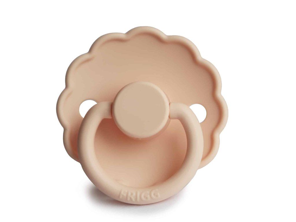 Cumlík je vyrobený zo silikónu medicínskeho stupňa s novým povrchom SilkySoft™, ktorý predstavuje najvyššiu kvalitu silikónu s ešte mäkším povrchom ako predtým, pre prirodzenejšie satie a ešte bezpečnejšiu voľbu pre detské podnebie a ďasná. Každý cumlík je strojovo testovaný na závadnosť, aby sa k našim najdôležitejším zákazníkom dostal vždy perfektný produkt. Tvar štítu je zakrivený jemne smerom von, aby sa zabránilo podráždeniu pokožky. Pre väčšiu bezpečnosť sú v štíte prítomné vzduchové otvory. Nový Click-lock™ systém odlišuje cumlík FRIGG od akéhokoľvek iného cumlíku na trhu. Vďaka novému 4-krokovému procesu spájania jednotlivých častí cumlíka je možné cumlík zostaviť jednoduchým kliknutím, bez použitia akejkoľvek sily. Vďaka tomu je cumlík ešte odolnejší ako predtým. FRIGG je 100% dizajnovaný a vyrobený v Dánsku ako jediná značka cumlíkov na svete! Každý cumlík je zároveň vyrobený na princípe zero-waste, čím sa minimalizuje odpad materiálu vďaka možnosti recyklácie. Cumlíky sú vyrábané s maximálny ohľadom na životné prostredie, a zároveň s dôrazom na uspokojenie potrieb najmenších detí. FRIGG kladie dôraz aj na bezpečnosť - cumlíky sú vyrábané bez BPA, PVC a ftalátov, každý cumlík podstupuje stretch a vacuum test pred uvedením do predaja a sú vyrábané podľa najprísnejšej normy EN1400-A2. Spoznajte svet značky FRIGG, inšpirovaný bohyňou zeme, vzduchu a plodnosti podľa severskej mytológie a nechajte sa zlákať dokonalosťou tvarov a farieb. Cumlík FRIGG Daisy s vrúbkovanými okrajmi, ktoré napodobňujú lupene kvetov, je základom elegantného dizajnu. Kvetinové a moderné detaily upútajú pozornosť každej štýlovej mamičky. Vďaka tomu sa FRIGG perfektne hodí pre dnešné matky, ktoré pri výbere základných potrieb pre bábätko prikladajú veľký význam klasickému dizajnu s modernými prvkami. Vlastnosti:- 100% navrhnuté v Dánsku