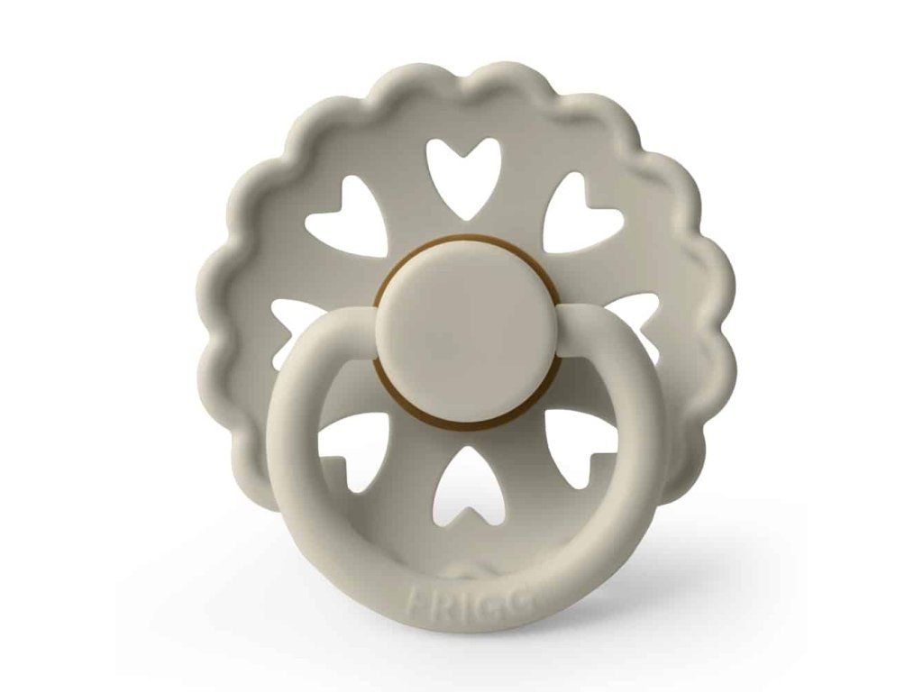 Cumlík je vyrobený z prírodného kaučuku, pričom jeho tvar je zakrivený jemne smerom von, aby sa zabránilo podráždeniu pokožky. Každý cumlík je strojovo testovaný na závadnosť, aby sa k našim najdôležitejším zákazníkom dostal vždy perfektný produkt. Tvar štítu je zakrivený jemne smerom von, aby sa zabránilo podráždeniu pokožky. Pre väčšiu bezpečnosť sú v štíte prítomné vzduchové otvory. Nový Click-lock™ systém odlišuje cumlík FRIGG od akéhokoľvek iného cumlíku na trhu. Vďaka novému 4-krokovému procesu spájania jednotlivých častí cumlíka je možné cumlík zostaviť jednoduchým kliknutím, bez použitia akejkoľvek sily. Vďaka tomu je cumlík ešte odolnejší ako predtým. FRIGG je 100% dizajnovaný a vyrobený v Dánsku ako jediná značka cumlíkov na svete! Každý cumlík je zároveň vyrobený na princípe zero-waste, čím sa minimalizuje odpad materiálu vďaka možnosti recyklácie. Cumlíky sú vyrábané s maximálny ohľadom na životné prostredie, a zároveň s dôrazom na uspokojenie potrieb najmenších detí. FRIGG kladie dôraz aj na bezpečnosť - cumlíky sú vyrábané bez BPA, PVC a ftalátov, každý cumlík podstupuje stretch a vacuum test pred uvedením do predaja a sú vyrábané podľa najprísnejšej normy EN1400-A2. Spoznajte svet značky FRIGG, inšpirovaný bohyňou zeme, vzduchu a plodnosti podľa severskej mytológie a nechajte sa zlákať dokonalosťou tvarov a farieb. Kolekcia cumlíkov FRIGG Fairytale je inšpirovaná umeleckou tvorbou dánskeho autora H.C. Andersena. Vrúbkované okraje a malé srdiečka vo vnútri štítu napodobňujú jeden z jeho papierových výstrižkov. Každá farba cumlíka je pomenovaná podľa jeho známych rozprávok, ktoré dodávajú cumlíkom nádych fantázie. Tento mimoriadne krásny cumlík, s moderným dizajnom a elegantnými detailmi, upúta pozornosť každej štýlovej mamičky. Vlastnosti:- 100% navrhnuté v Dánsku