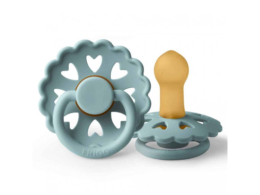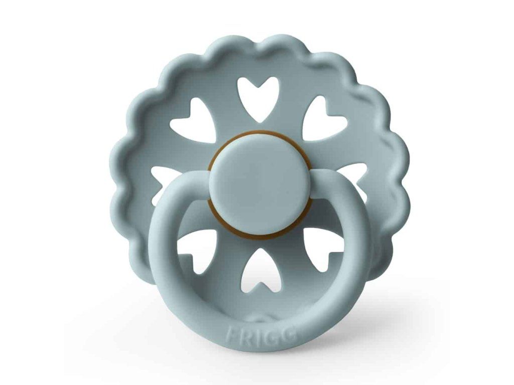 Cumlík je vyrobený z prírodného kaučuku, pričom jeho tvar je zakrivený jemne smerom von, aby sa zabránilo podráždeniu pokožky. Každý cumlík je strojovo testovaný na závadnosť, aby sa k našim najdôležitejším zákazníkom dostal vždy perfektný produkt. Tvar štítu je zakrivený jemne smerom von, aby sa zabránilo podráždeniu pokožky. Pre väčšiu bezpečnosť sú v štíte prítomné vzduchové otvory. Nový Click-lock™ systém odlišuje cumlík FRIGG od akéhokoľvek iného cumlíku na trhu. Vďaka novému 4-krokovému procesu spájania jednotlivých častí cumlíka je možné cumlík zostaviť jednoduchým kliknutím, bez použitia akejkoľvek sily. Vďaka tomu je cumlík ešte odolnejší ako predtým. FRIGG je 100% dizajnovaný a vyrobený v Dánsku ako jediná značka cumlíkov na svete! Každý cumlík je zároveň vyrobený na princípe zero-waste, čím sa minimalizuje odpad materiálu vďaka možnosti recyklácie. Cumlíky sú vyrábané s maximálny ohľadom na životné prostredie, a zároveň s dôrazom na uspokojenie potrieb najmenších detí. FRIGG kladie dôraz aj na bezpečnosť - cumlíky sú vyrábané bez BPA, PVC a ftalátov, každý cumlík podstupuje stretch a vacuum test pred uvedením do predaja a sú vyrábané podľa najprísnejšej normy EN1400-A2. Spoznajte svet značky FRIGG, inšpirovaný bohyňou zeme, vzduchu a plodnosti podľa severskej mytológie a nechajte sa zlákať dokonalosťou tvarov a farieb. Kolekcia cumlíkov FRIGG Fairytale je inšpirovaná umeleckou tvorbou dánskeho autora H.C. Andersena. Vrúbkované okraje a malé srdiečka vo vnútri štítu napodobňujú jeden z jeho papierových výstrižkov. Každá farba cumlíka je pomenovaná podľa jeho známych rozprávok, ktoré dodávajú cumlíkom nádych fantázie. Tento mimoriadne krásny cumlík, s moderným dizajnom a elegantnými detailmi, upúta pozornosť každej štýlovej mamičky. Vlastnosti:- 100% navrhnuté v Dánsku