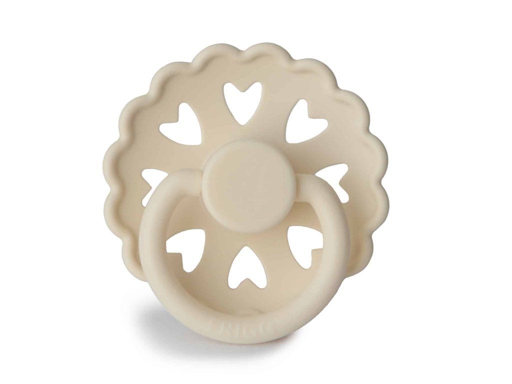 Cumlík je vyrobený zo silikónu medicínskeho stupňa s novým povrchom SilkySoft™, ktorý predstavuje najvyššiu kvalitu silikónu s ešte mäkším povrchom ako predtým, pre prirodzenejšie satie a ešte bezpečnejšiu voľbu pre detské podnebie a ďasná. Každý cumlík je strojovo testovaný na závadnosť, aby sa k našim najdôležitejším zákazníkom dostal vždy perfektný produkt. Tvar štítu je zakrivený jemne smerom von, aby sa zabránilo podráždeniu pokožky. Pre väčšiu bezpečnosť sú v štíte prítomné vzduchové otvory. Nový Click-lock™ systém odlišuje cumlík FRIGG od akéhokoľvek iného cumlíku na trhu. Vďaka novému 4-krokovému procesu spájania jednotlivých častí cumlíka je možné cumlík zostaviť jednoduchým kliknutím, bez použitia akejkoľvek sily. Vďaka tomu je cumlík ešte odolnejší ako predtým. FRIGG je 100% dizajnovaný a vyrobený v Dánsku ako jediná značka cumlíkov na svete! Každý cumlík je zároveň vyrobený na princípe zero-waste, čím sa minimalizuje odpad materiálu vďaka možnosti recyklácie. Cumlíky sú vyrábané s maximálny ohľadom na životné prostredie, a zároveň s dôrazom na uspokojenie potrieb najmenších detí. FRIGG kladie dôraz aj na bezpečnosť - cumlíky sú vyrábané bez BPA, PVC a ftalátov, každý cumlík podstupuje stretch a vacuum test pred uvedením do predaja a sú vyrábané podľa najprísnejšej normy EN1400-A2. Spoznajte svet značky FRIGG, inšpirovaný bohyňou zeme, vzduchu a plodnosti podľa severskej mytológie a nechajte sa zlákať dokonalosťou tvarov a farieb. Kolekcia cumlíkov FRIGG Fairytale je inšpirovaná umeleckou tvorbou dánskeho autora H.C. Andersena. Vrúbkované okraje a malé srdiečka vo vnútri štítu napodobňujú jeden z jeho papierových výstrižkov. Každá farba cumlíka je pomenovaná podľa jeho známych rozprávok, ktoré dodávajú cumlíkom nádych fantázie. Tento mimoriadne krásny cumlík, s moderným dizajnom a elegantnými detailmi, upúta pozornosť každej štýlovej mamičky. Vlastnosti:- 100% navrhnuté v Dánsku