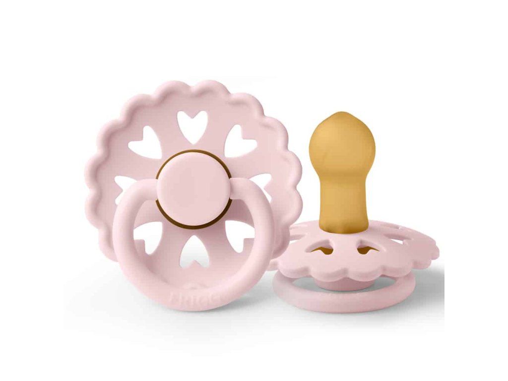 Cumlík je vyrobený z prírodného kaučuku, pričom jeho tvar je zakrivený jemne smerom von, aby sa zabránilo podráždeniu pokožky. Každý cumlík je strojovo testovaný na závadnosť, aby sa k našim najdôležitejším zákazníkom dostal vždy perfektný produkt. Tvar štítu je zakrivený jemne smerom von, aby sa zabránilo podráždeniu pokožky. Pre väčšiu bezpečnosť sú v štíte prítomné vzduchové otvory. Nový Click-lock™ systém odlišuje cumlík FRIGG od akéhokoľvek iného cumlíku na trhu. Vďaka novému 4-krokovému procesu spájania jednotlivých častí cumlíka je možné cumlík zostaviť jednoduchým kliknutím, bez použitia akejkoľvek sily. Vďaka tomu je cumlík ešte odolnejší ako predtým. FRIGG je 100% dizajnovaný a vyrobený v Dánsku ako jediná značka cumlíkov na svete! Každý cumlík je zároveň vyrobený na princípe zero-waste, čím sa minimalizuje odpad materiálu vďaka možnosti recyklácie. Cumlíky sú vyrábané s maximálny ohľadom na životné prostredie, a zároveň s dôrazom na uspokojenie potrieb najmenších detí. FRIGG kladie dôraz aj na bezpečnosť - cumlíky sú vyrábané bez BPA, PVC a ftalátov, každý cumlík podstupuje stretch a vacuum test pred uvedením do predaja a sú vyrábané podľa najprísnejšej normy EN1400-A2. Spoznajte svet značky FRIGG, inšpirovaný bohyňou zeme, vzduchu a plodnosti podľa severskej mytológie a nechajte sa zlákať dokonalosťou tvarov a farieb. Kolekcia cumlíkov FRIGG Fairytale je inšpirovaná umeleckou tvorbou dánskeho autora H.C. Andersena. Vrúbkované okraje a malé srdiečka vo vnútri štítu napodobňujú jeden z jeho papierových výstrižkov. Každá farba cumlíka je pomenovaná podľa jeho známych rozprávok, ktoré dodávajú cumlíkom nádych fantázie. Tento mimoriadne krásny cumlík, s moderným dizajnom a elegantnými detailmi, upúta pozornosť každej štýlovej mamičky. Vlastnosti:- 100% navrhnuté v Dánsku