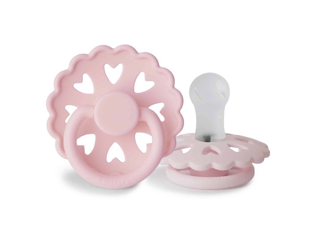 Cumlík je vyrobený zo silikónu medicínskeho stupňa s novým povrchom SilkySoft™, ktorý predstavuje najvyššiu kvalitu silikónu s ešte mäkším povrchom ako predtým, pre prirodzenejšie satie a ešte bezpečnejšiu voľbu pre detské podnebie a ďasná. Každý cumlík je strojovo testovaný na závadnosť, aby sa k našim najdôležitejším zákazníkom dostal vždy perfektný produkt. Tvar štítu je zakrivený jemne smerom von, aby sa zabránilo podráždeniu pokožky. Pre väčšiu bezpečnosť sú v štíte prítomné vzduchové otvory. Nový Click-lock™ systém odlišuje cumlík FRIGG od akéhokoľvek iného cumlíku na trhu. Vďaka novému 4-krokovému procesu spájania jednotlivých častí cumlíka je možné cumlík zostaviť jednoduchým kliknutím, bez použitia akejkoľvek sily. Vďaka tomu je cumlík ešte odolnejší ako predtým. FRIGG je 100% dizajnovaný a vyrobený v Dánsku ako jediná značka cumlíkov na svete! Každý cumlík je zároveň vyrobený na princípe zero-waste, čím sa minimalizuje odpad materiálu vďaka možnosti recyklácie. Cumlíky sú vyrábané s maximálny ohľadom na životné prostredie, a zároveň s dôrazom na uspokojenie potrieb najmenších detí. FRIGG kladie dôraz aj na bezpečnosť - cumlíky sú vyrábané bez BPA, PVC a ftalátov, každý cumlík podstupuje stretch a vacuum test pred uvedením do predaja a sú vyrábané podľa najprísnejšej normy EN1400-A2. Spoznajte svet značky FRIGG, inšpirovaný bohyňou zeme, vzduchu a plodnosti podľa severskej mytológie a nechajte sa zlákať dokonalosťou tvarov a farieb. Kolekcia cumlíkov FRIGG Fairytale je inšpirovaná umeleckou tvorbou dánskeho autora H.C. Andersena. Vrúbkované okraje a malé srdiečka vo vnútri štítu napodobňujú jeden z jeho papierových výstrižkov. Každá farba cumlíka je pomenovaná podľa jeho známych rozprávok, ktoré dodávajú cumlíkom nádych fantázie. Tento mimoriadne krásny cumlík, s moderným dizajnom a elegantnými detailmi, upúta pozornosť každej štýlovej mamičky. Vlastnosti:- 100% navrhnuté v Dánsku