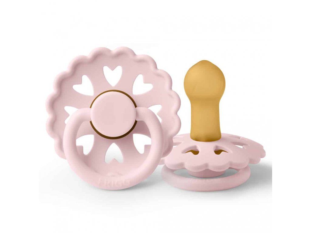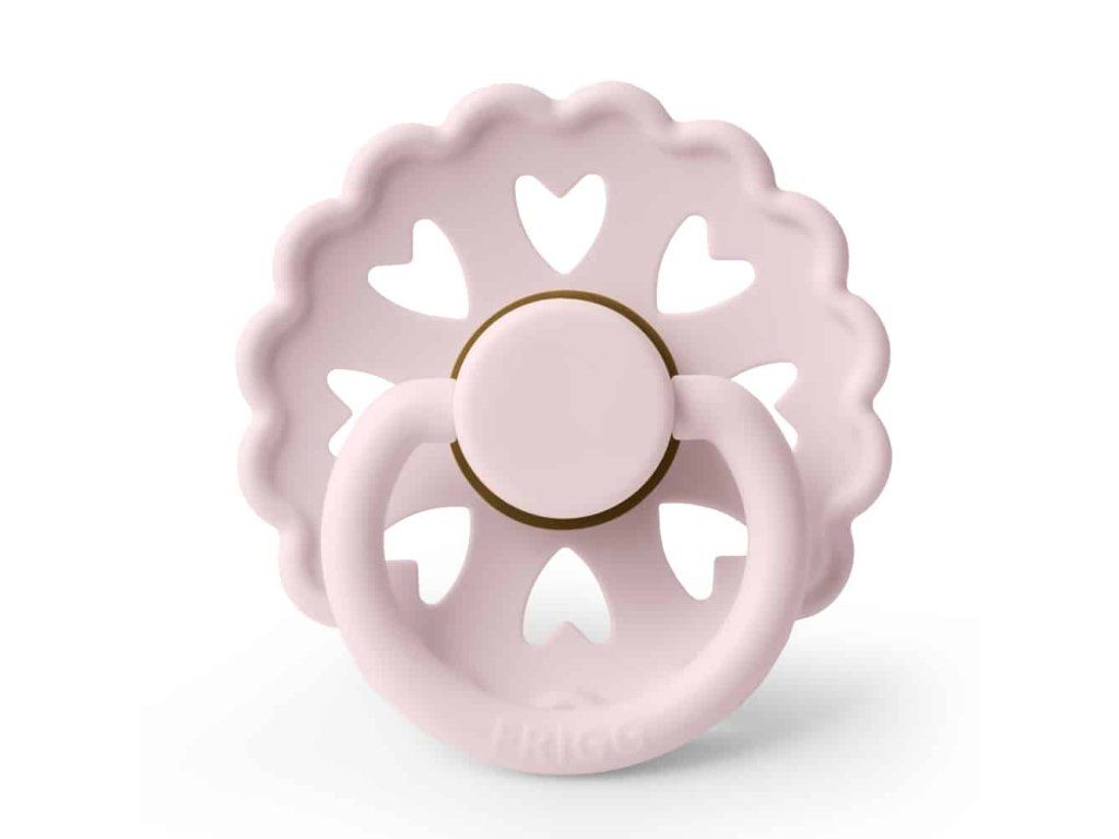 Cumlík je vyrobený z prírodného kaučuku, pričom jeho tvar je zakrivený jemne smerom von, aby sa zabránilo podráždeniu pokožky. Každý cumlík je strojovo testovaný na závadnosť, aby sa k našim najdôležitejším zákazníkom dostal vždy perfektný produkt. Tvar štítu je zakrivený jemne smerom von, aby sa zabránilo podráždeniu pokožky. Pre väčšiu bezpečnosť sú v štíte prítomné vzduchové otvory. Nový Click-lock™ systém odlišuje cumlík FRIGG od akéhokoľvek iného cumlíku na trhu. Vďaka novému 4-krokovému procesu spájania jednotlivých častí cumlíka je možné cumlík zostaviť jednoduchým kliknutím, bez použitia akejkoľvek sily. Vďaka tomu je cumlík ešte odolnejší ako predtým. FRIGG je 100% dizajnovaný a vyrobený v Dánsku ako jediná značka cumlíkov na svete! Každý cumlík je zároveň vyrobený na princípe zero-waste, čím sa minimalizuje odpad materiálu vďaka možnosti recyklácie. Cumlíky sú vyrábané s maximálny ohľadom na životné prostredie, a zároveň s dôrazom na uspokojenie potrieb najmenších detí. FRIGG kladie dôraz aj na bezpečnosť - cumlíky sú vyrábané bez BPA, PVC a ftalátov, každý cumlík podstupuje stretch a vacuum test pred uvedením do predaja a sú vyrábané podľa najprísnejšej normy EN1400-A2. Spoznajte svet značky FRIGG, inšpirovaný bohyňou zeme, vzduchu a plodnosti podľa severskej mytológie a nechajte sa zlákať dokonalosťou tvarov a farieb. Kolekcia cumlíkov FRIGG Fairytale je inšpirovaná umeleckou tvorbou dánskeho autora H.C. Andersena. Vrúbkované okraje a malé srdiečka vo vnútri štítu napodobňujú jeden z jeho papierových výstrižkov. Každá farba cumlíka je pomenovaná podľa jeho známych rozprávok, ktoré dodávajú cumlíkom nádych fantázie. Tento mimoriadne krásny cumlík, s moderným dizajnom a elegantnými detailmi, upúta pozornosť každej štýlovej mamičky. Vlastnosti:- 100% navrhnuté v Dánsku