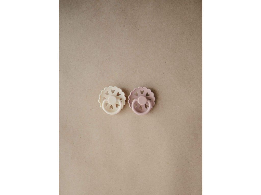 Cumlík je vyrobený zo silikónu medicínskeho stupňa s novým povrchom SilkySoft™, ktorý predstavuje najvyššiu kvalitu silikónu s ešte mäkším povrchom ako predtým, pre prirodzenejšie satie a ešte bezpečnejšiu voľbu pre detské podnebie a ďasná. Každý cumlík je strojovo testovaný na závadnosť, aby sa k našim najdôležitejším zákazníkom dostal vždy perfektný produkt. Tvar štítu je zakrivený jemne smerom von, aby sa zabránilo podráždeniu pokožky. Pre väčšiu bezpečnosť sú v štíte prítomné vzduchové otvory. Nový Click-lock™ systém odlišuje cumlík FRIGG od akéhokoľvek iného cumlíku na trhu. Vďaka novému 4-krokovému procesu spájania jednotlivých častí cumlíka je možné cumlík zostaviť jednoduchým kliknutím, bez použitia akejkoľvek sily. Vďaka tomu je cumlík ešte odolnejší ako predtým. FRIGG je 100% dizajnovaný a vyrobený v Dánsku ako jediná značka cumlíkov na svete! Každý cumlík je zároveň vyrobený na princípe zero-waste, čím sa minimalizuje odpad materiálu vďaka možnosti recyklácie. Cumlíky sú vyrábané s maximálny ohľadom na životné prostredie, a zároveň s dôrazom na uspokojenie potrieb najmenších detí. FRIGG kladie dôraz aj na bezpečnosť - cumlíky sú vyrábané bez BPA, PVC a ftalátov, každý cumlík podstupuje stretch a vacuum test pred uvedením do predaja a sú vyrábané podľa najprísnejšej normy EN1400-A2. Spoznajte svet značky FRIGG, inšpirovaný bohyňou zeme, vzduchu a plodnosti podľa severskej mytológie a nechajte sa zlákať dokonalosťou tvarov a farieb. Kolekcia cumlíkov FRIGG Fairytale je inšpirovaná umeleckou tvorbou dánskeho autora H.C. Andersena. Vrúbkované okraje a malé srdiečka vo vnútri štítu napodobňujú jeden z jeho papierových výstrižkov. Každá farba cumlíka je pomenovaná podľa jeho známych rozprávok, ktoré dodávajú cumlíkom nádych fantázie. Tento mimoriadne krásny cumlík, s moderným dizajnom a elegantnými detailmi, upúta pozornosť každej štýlovej mamičky. Vlastnosti:- 100% navrhnuté v Dánsku