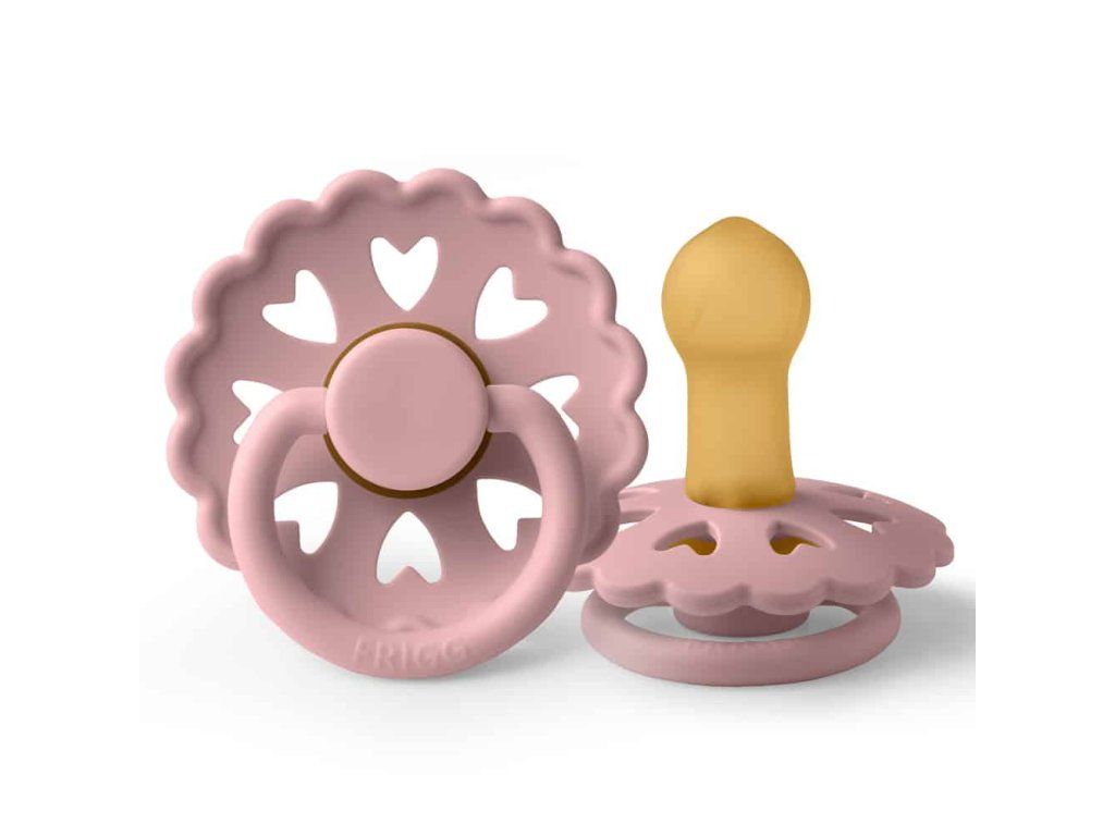 Cumlík je vyrobený z prírodného kaučuku, pričom jeho tvar je zakrivený jemne smerom von, aby sa zabránilo podráždeniu pokožky. Každý cumlík je strojovo testovaný na závadnosť, aby sa k našim najdôležitejším zákazníkom dostal vždy perfektný produkt. Tvar štítu je zakrivený jemne smerom von, aby sa zabránilo podráždeniu pokožky. Pre väčšiu bezpečnosť sú v štíte prítomné vzduchové otvory. Nový Click-lock™ systém odlišuje cumlík FRIGG od akéhokoľvek iného cumlíku na trhu. Vďaka novému 4-krokovému procesu spájania jednotlivých častí cumlíka je možné cumlík zostaviť jednoduchým kliknutím, bez použitia akejkoľvek sily. Vďaka tomu je cumlík ešte odolnejší ako predtým. FRIGG je 100% dizajnovaný a vyrobený v Dánsku ako jediná značka cumlíkov na svete! Každý cumlík je zároveň vyrobený na princípe zero-waste, čím sa minimalizuje odpad materiálu vďaka možnosti recyklácie. Cumlíky sú vyrábané s maximálny ohľadom na životné prostredie, a zároveň s dôrazom na uspokojenie potrieb najmenších detí. FRIGG kladie dôraz aj na bezpečnosť - cumlíky sú vyrábané bez BPA, PVC a ftalátov, každý cumlík podstupuje stretch a vacuum test pred uvedením do predaja a sú vyrábané podľa najprísnejšej normy EN1400-A2. Spoznajte svet značky FRIGG, inšpirovaný bohyňou zeme, vzduchu a plodnosti podľa severskej mytológie a nechajte sa zlákať dokonalosťou tvarov a farieb. Kolekcia cumlíkov FRIGG Fairytale je inšpirovaná umeleckou tvorbou dánskeho autora H.C. Andersena. Vrúbkované okraje a malé srdiečka vo vnútri štítu napodobňujú jeden z jeho papierových výstrižkov. Každá farba cumlíka je pomenovaná podľa jeho známych rozprávok, ktoré dodávajú cumlíkom nádych fantázie. Tento mimoriadne krásny cumlík, s moderným dizajnom a elegantnými detailmi, upúta pozornosť každej štýlovej mamičky. Vlastnosti:- 100% navrhnuté v Dánsku