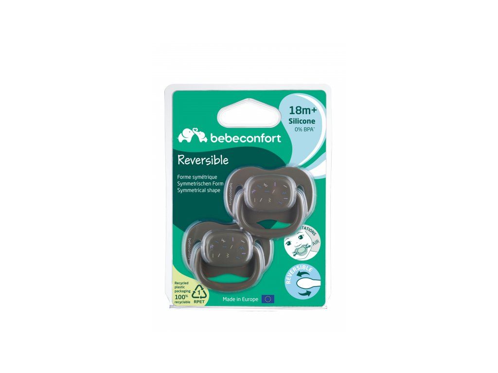 Cumlík so symetrickým cumlíkom z mäkkého silikónu. Vonkajšia časť cumlíka má otvory na cirkuláciu vzduchu, aby nedošlo k podráždeniu citlivej pokožky okolo úst.