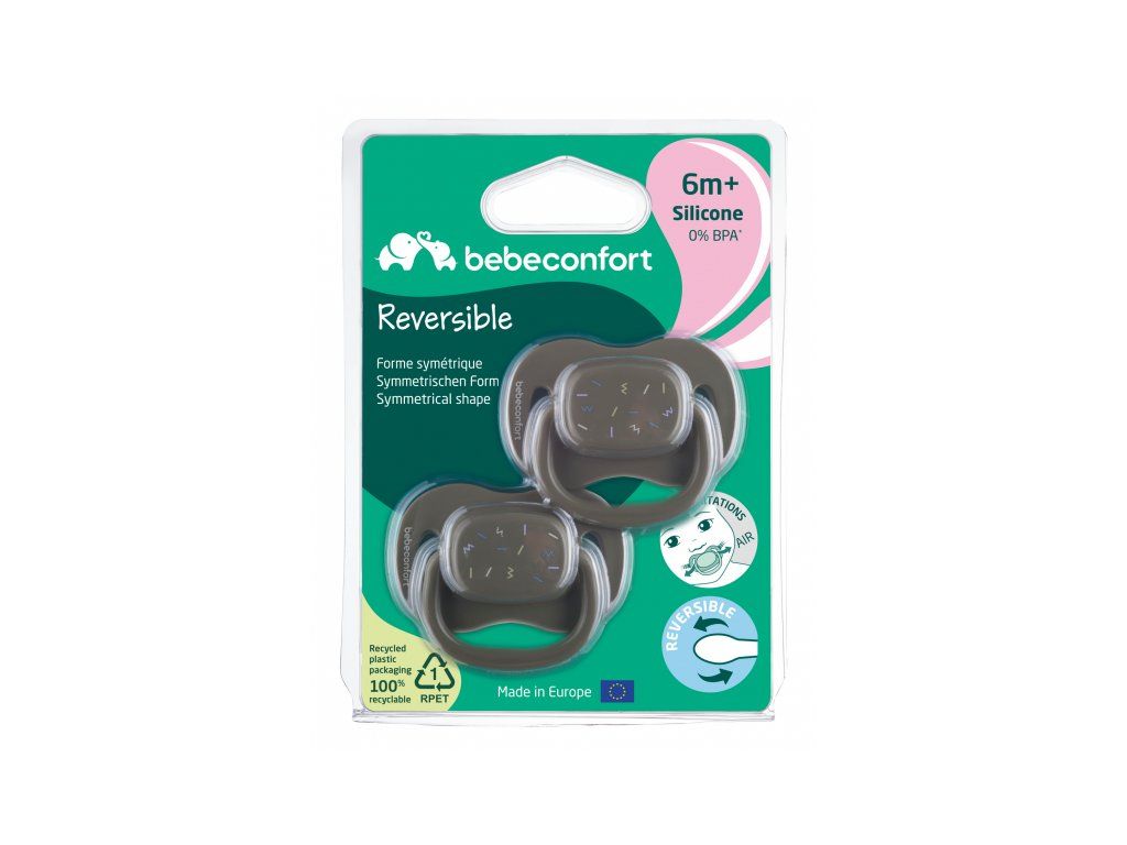 Cumlík so symetrickým cumlíkom z mäkkého silikónu. Vonkajšia časť cumlíka má otvory na cirkuláciu vzduchu, aby nedošlo k podráždeniu citlivej pokožky okolo úst.